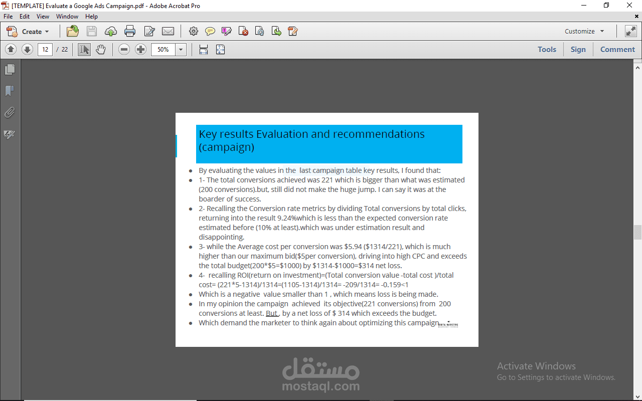 Evaluation for Google ad ward campaign through 4 levels ,Campaign, Ad groups, Ads, and Keywords.