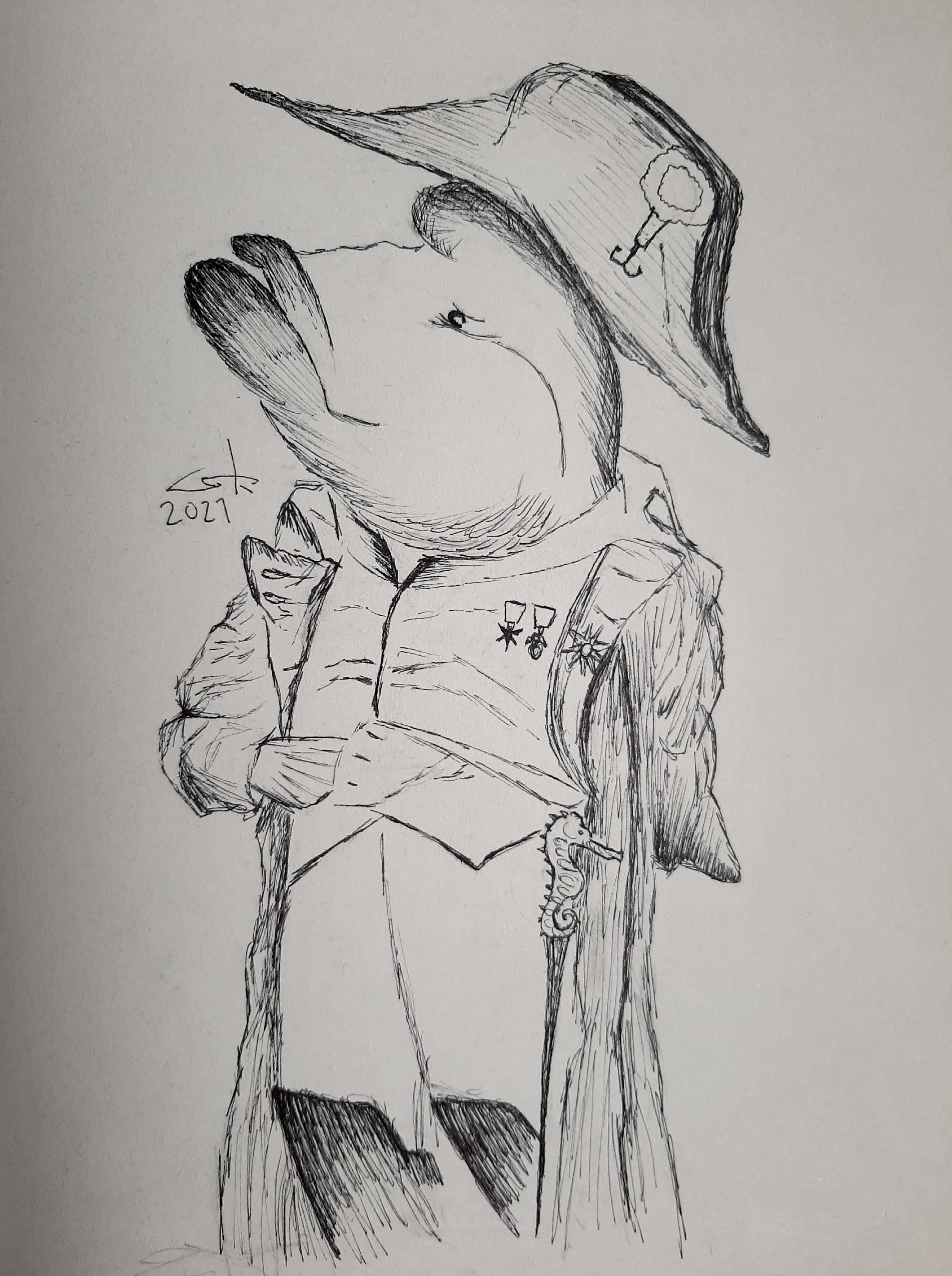 تصميم شخصية كاركاتير مستوحى من سمكة تعرف باسم بسمكة نابليون - رسم رقمي