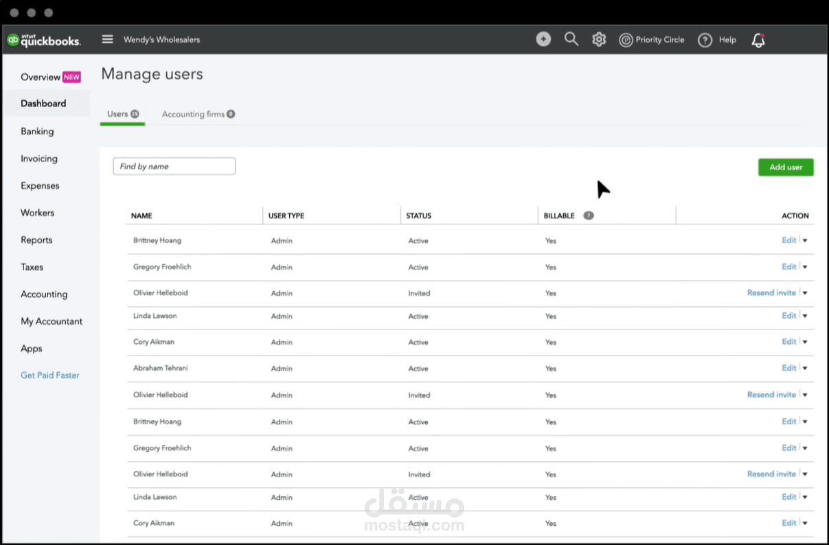 معرفة ممتازة بالعمل على برنامج Quick Books العالمي