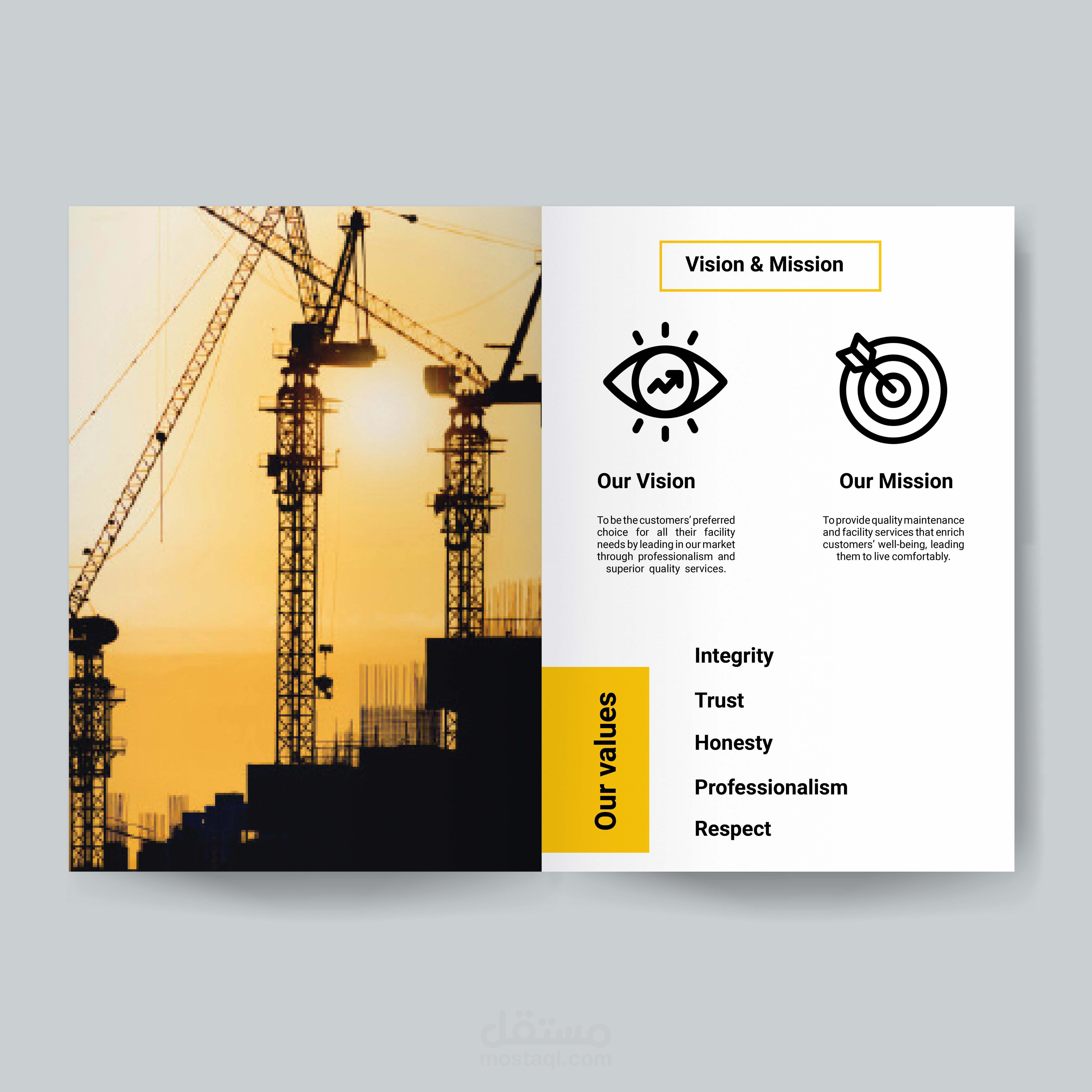 تصميم بروفايل على برنامج Adobe InDesign، لبناء براند مثير وجذاب خاص للشركة