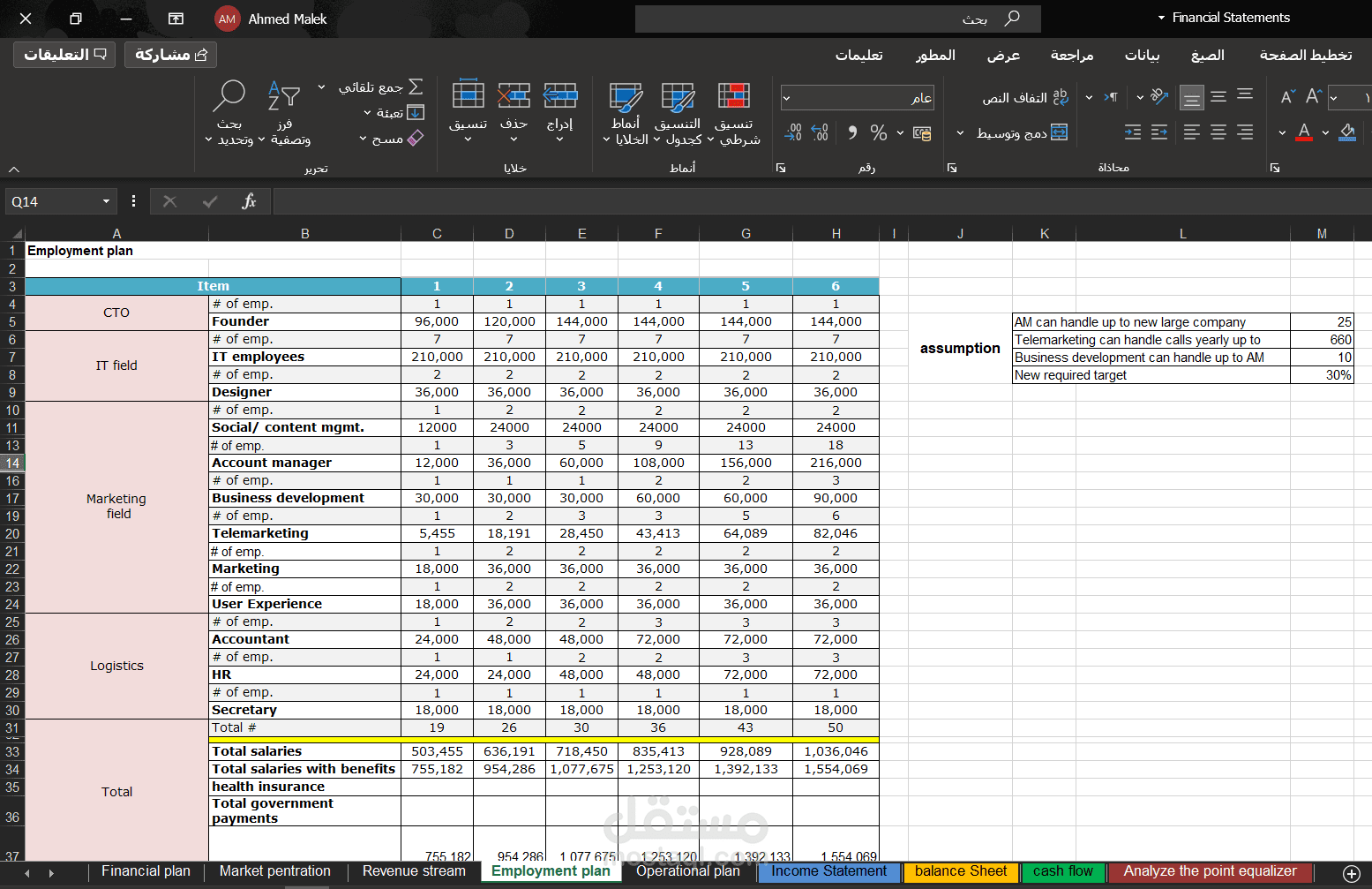 إنشاء الخطط المالية للشركات ووضع المعايير المالية اللازمة للخطة لتسليط الضوء على توقعات الأداء والتنبؤ المالي خلال الفترات القادمة