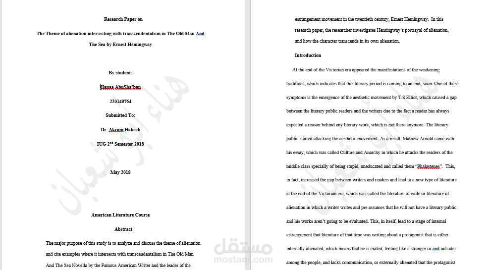 بحث أكاديمي أدبي بشكل احترافي عن رواية Old Man and the Sea. بإمكانك التواصل معي للحصول على رابط درايف