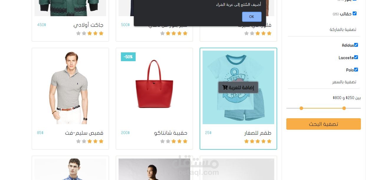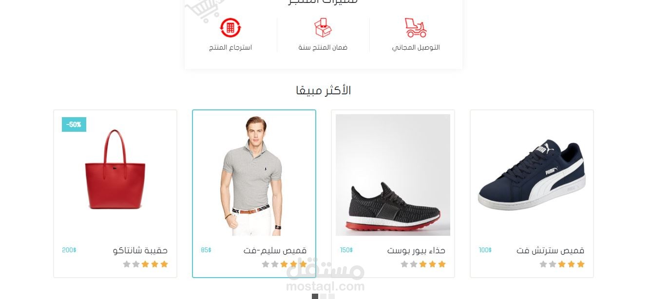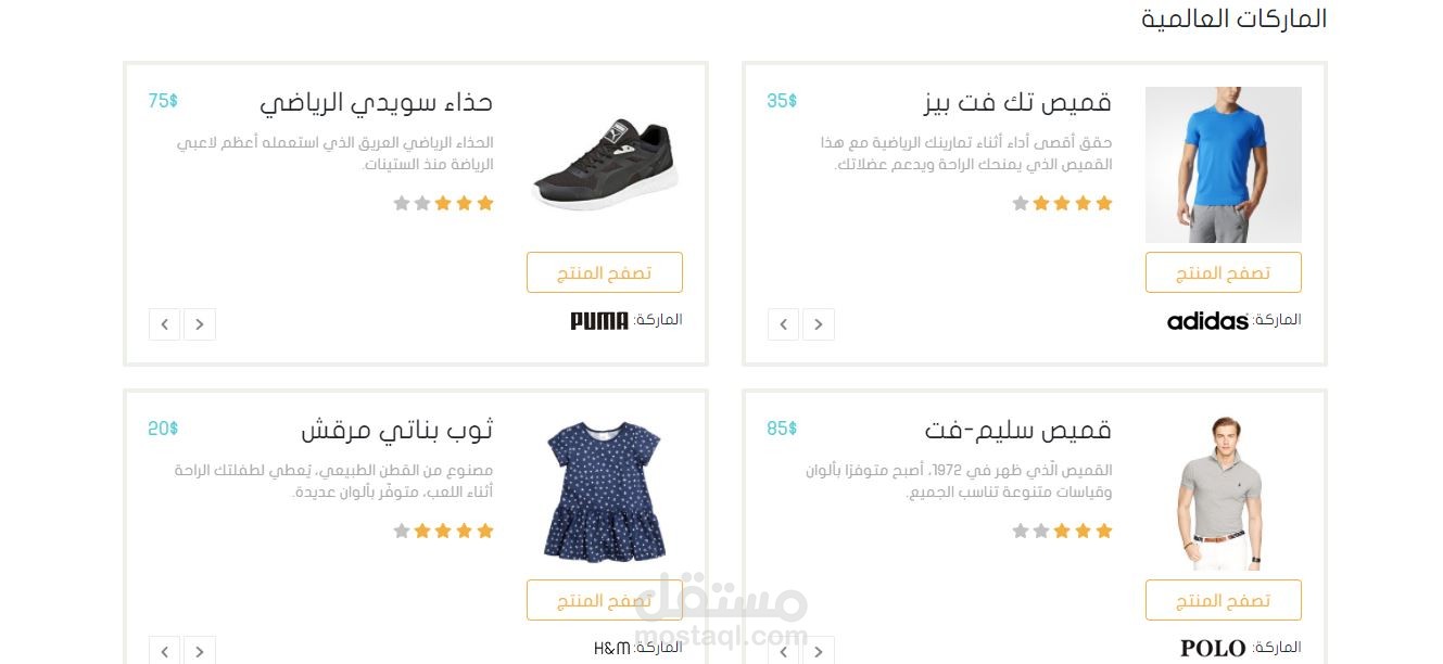 موقعاً متجاوباً، يعرض مجموعة من الألبسة مصنفة ضمن الماركات الخاصة بها أو الأكثر مبيعاً. كما ويحتوي على قسم بحث متقدم لتصفية النتائج حسب ما يبحث عنه الزائر، ثم تضاف الألبسة لعربة الشراء، حيث يختار الزائر الكمية المحددة، قبل تعبئة بيانات توصيل الألبسة الى الوجهة.