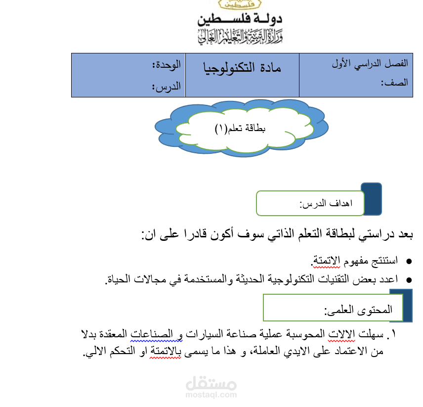 تصميم بطاقة تعلم لمادة أساسية باستخدام برامج المايكروسوفت
