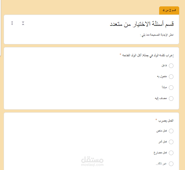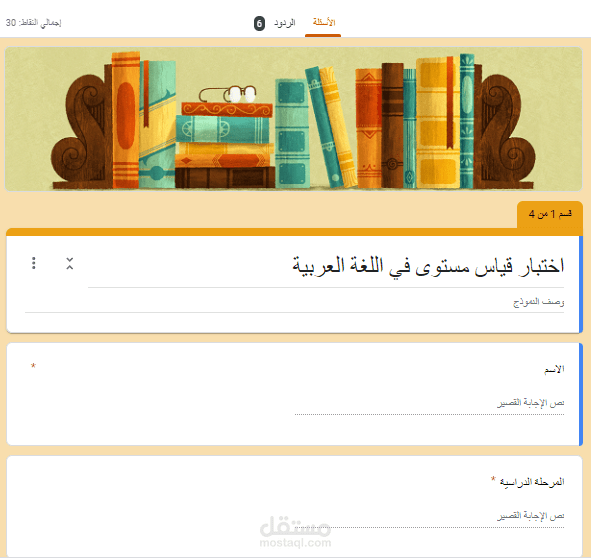 اختبار قياس مستوى للغة العربية تم كتابته على Google Forms