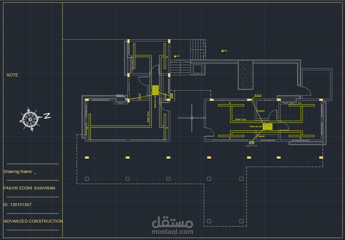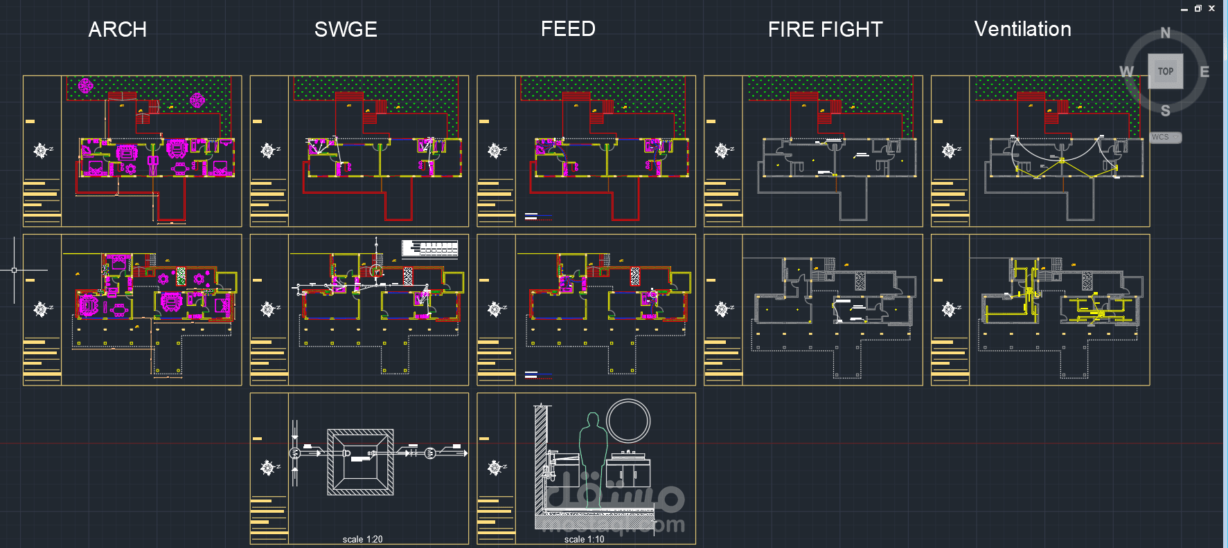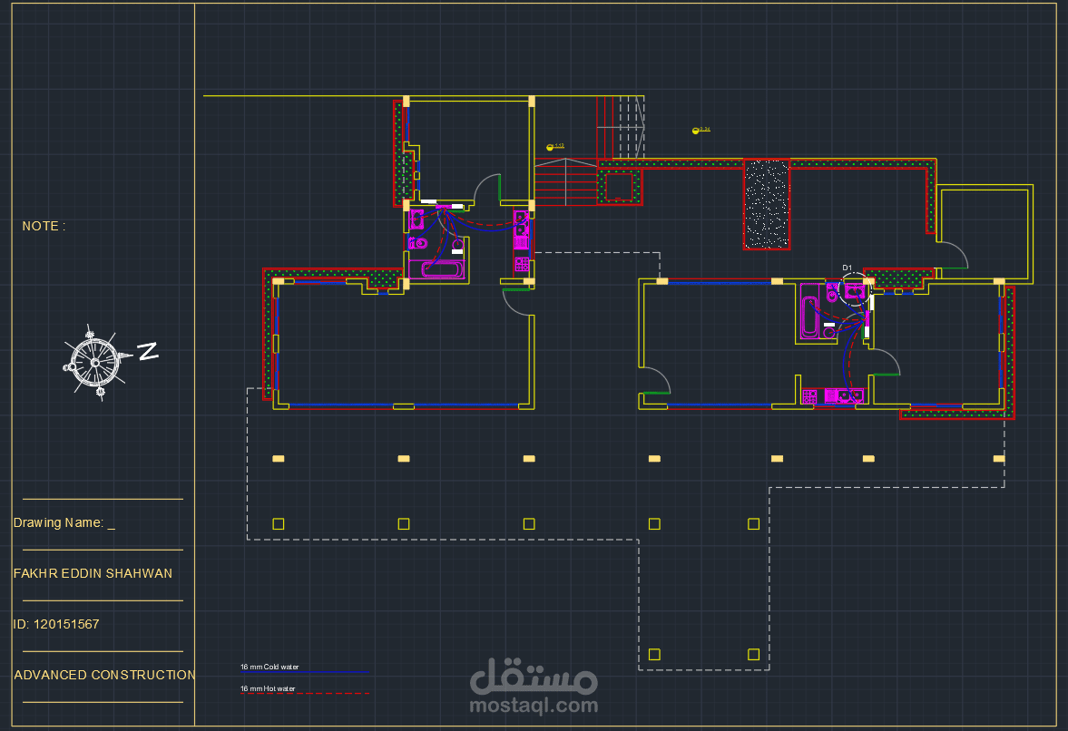 بعض المخططات الميكانيكية لمشروع شاليه. تشمل المخططات اعمال التغذية و الصرف للمياه مع توضيح مخططات تفصيلية تنفيذية