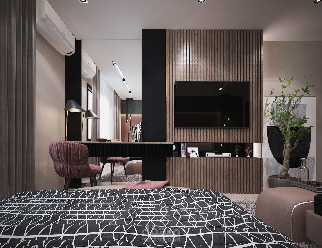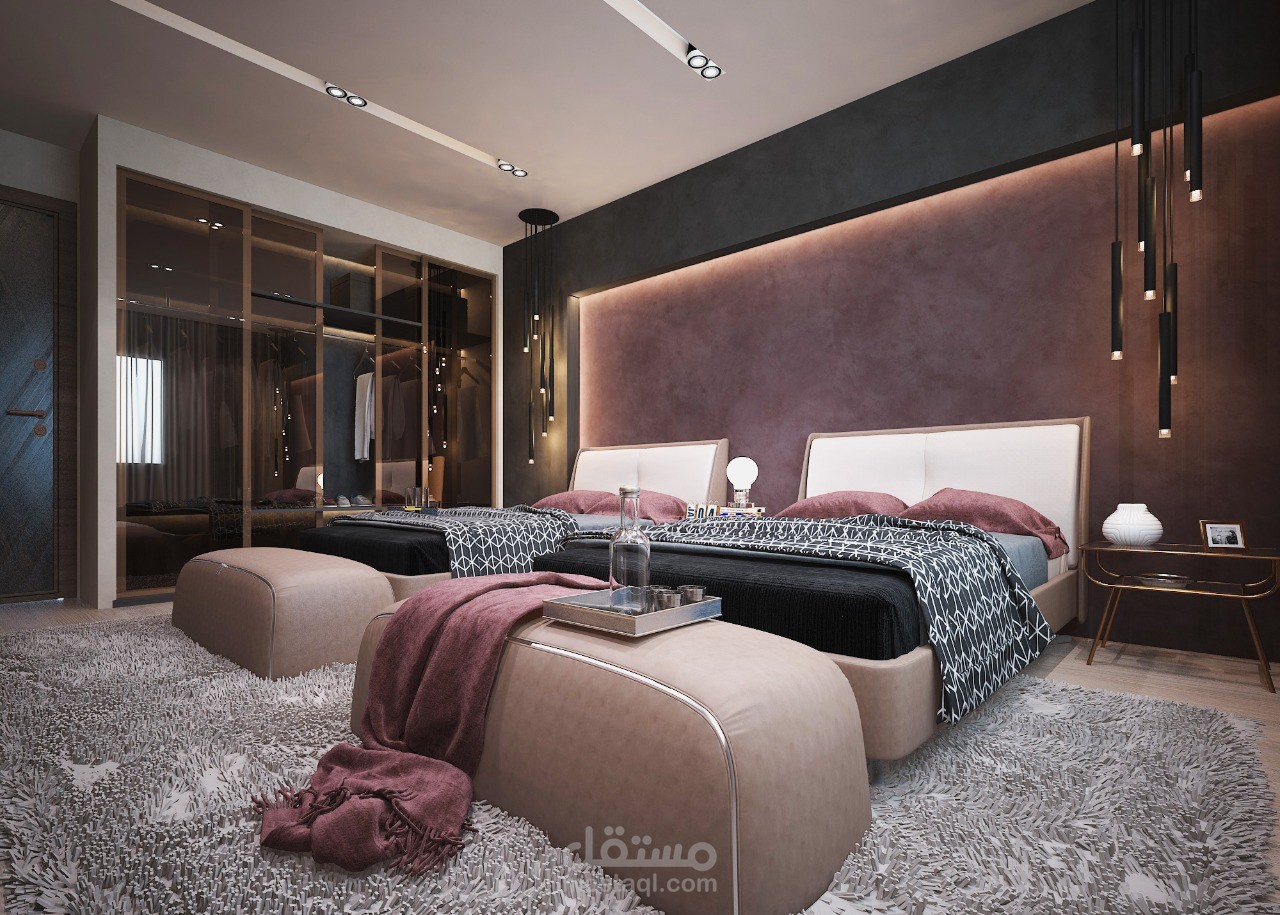تصميم داخلي سكني لغرفة نوم باستعمال 3ds max و vray.