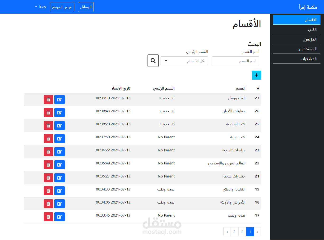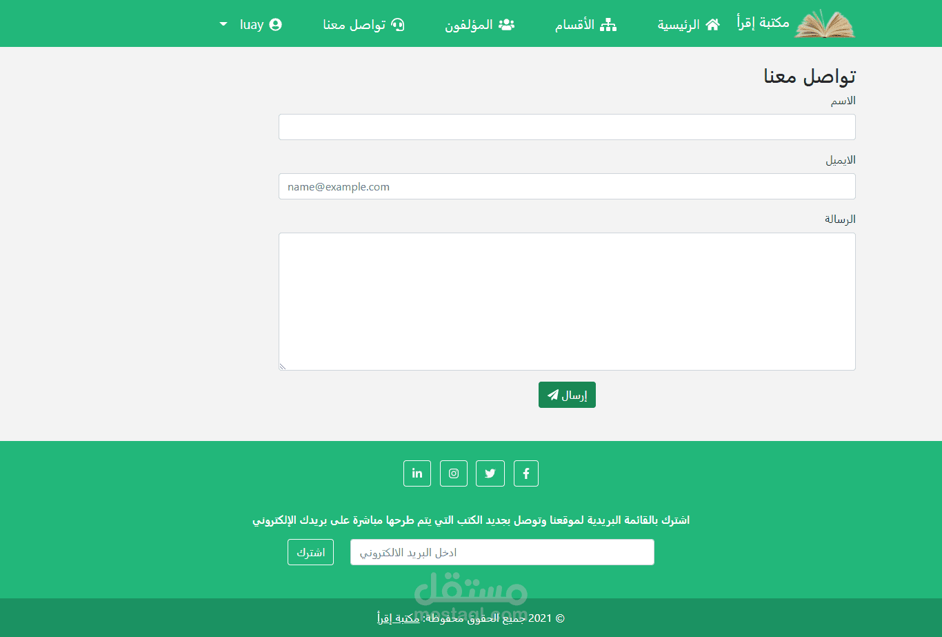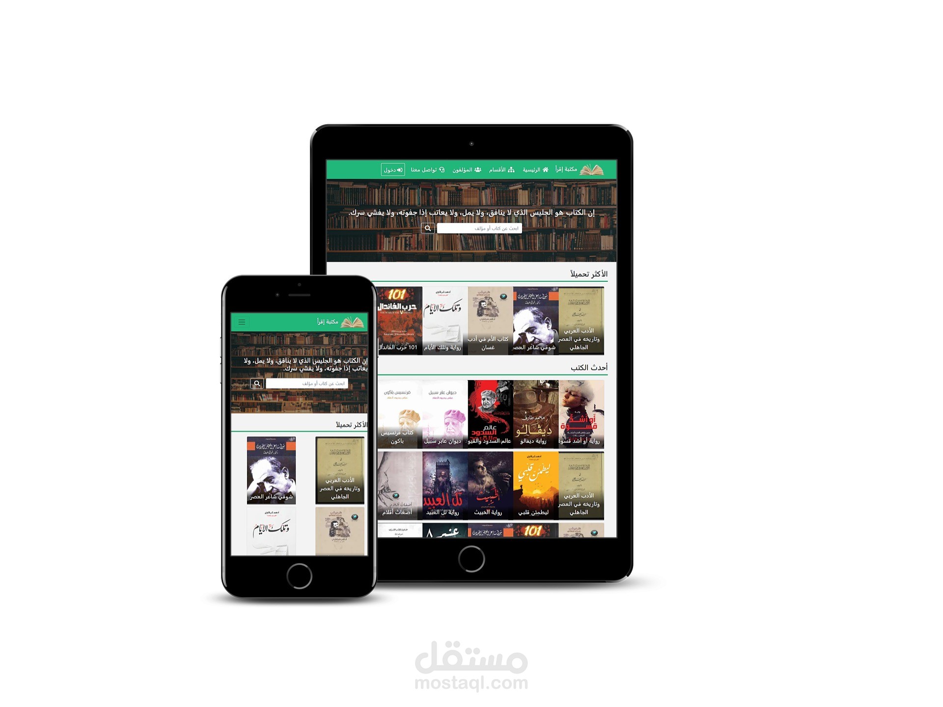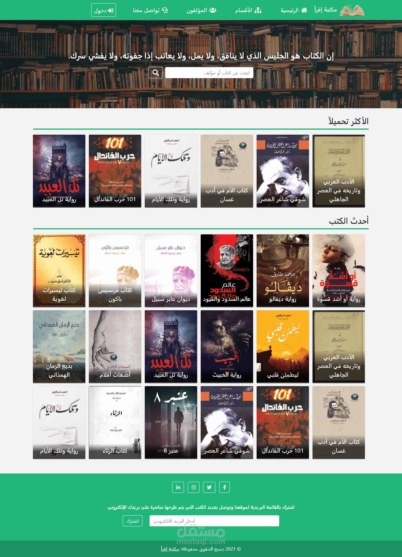 موقع لتحميل الكتب بصيغة pdf ويشمل الموقع لوحة تحكم كاملة لإضافة الكتب وتعديلها وحذفها بالإضافة الى اضافة أقسام رئيسية وفرعية لتصنيف الكتب واضافة مستخدمين للموقع مع تحديد صلاحياتهم بالموقع