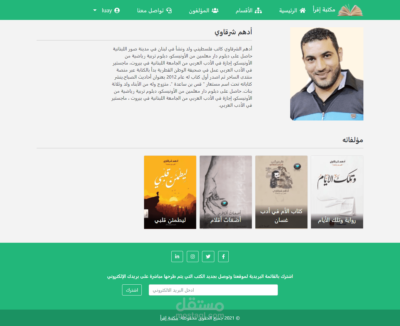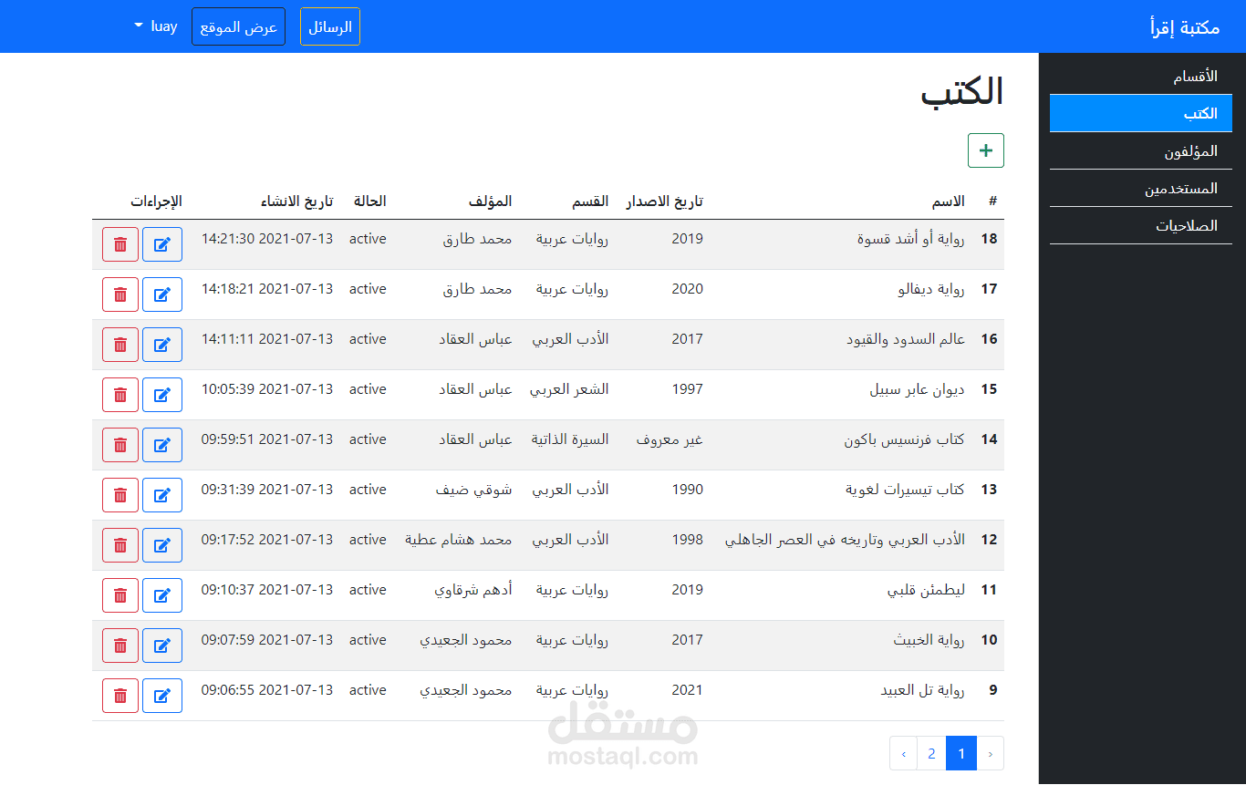 ويشمل اضافة مؤلفين واضافة الكتب حسب المؤلف وتم ربط الموقع بقاعدة بيانات Mysql وبالإضافة الى ان الموقع متجاوب مع جميع الشاشات ويعمل بكفاءة