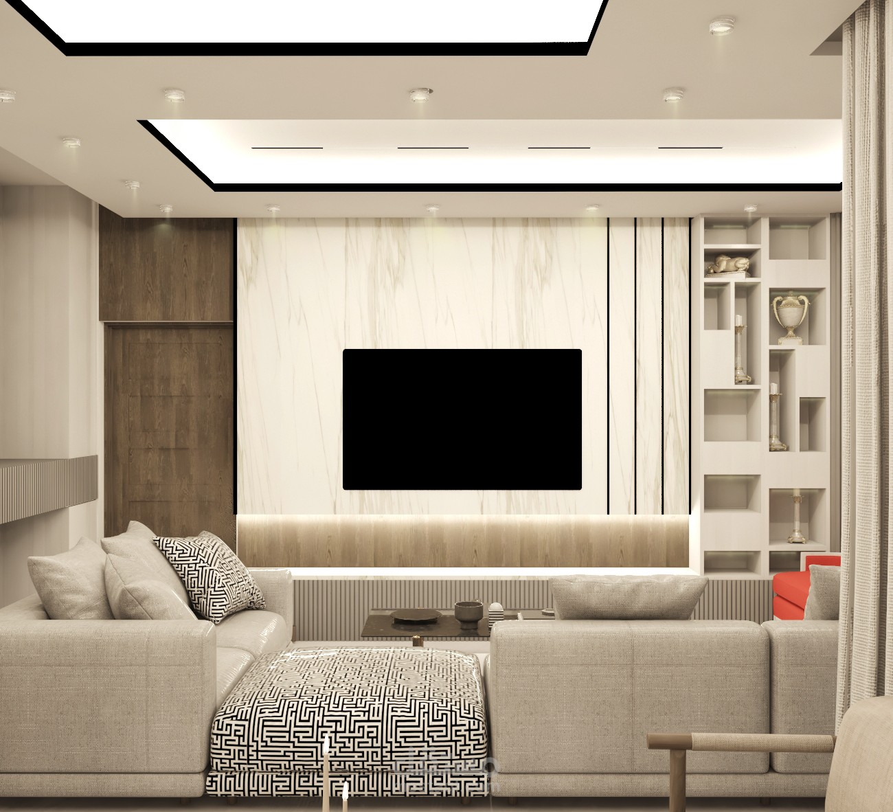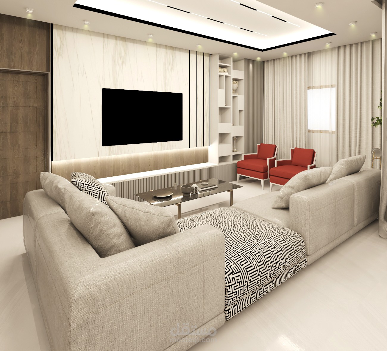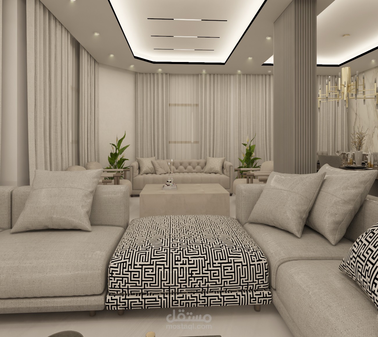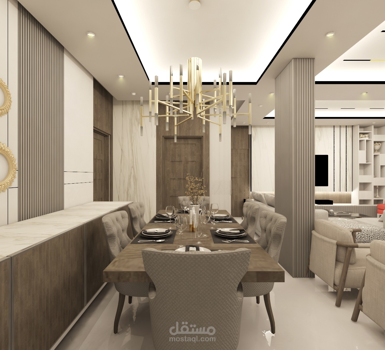 تصميمي لشقة في سوريا. . فراغ الصالون والمعيشة وركن الطعام