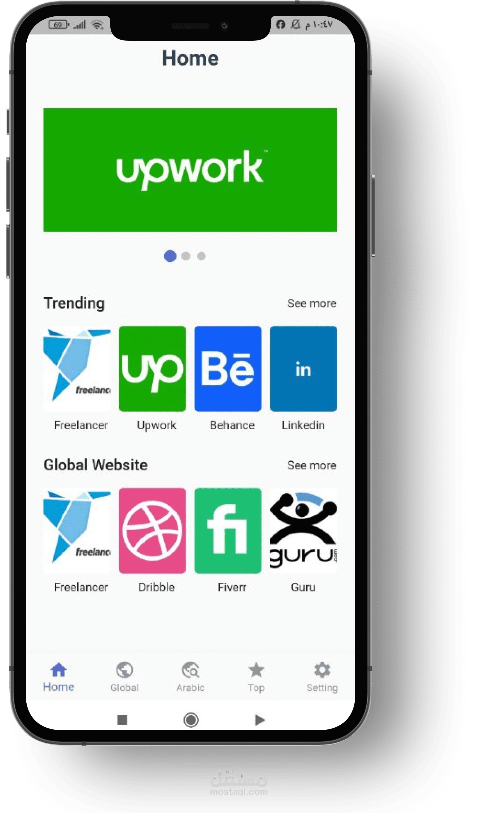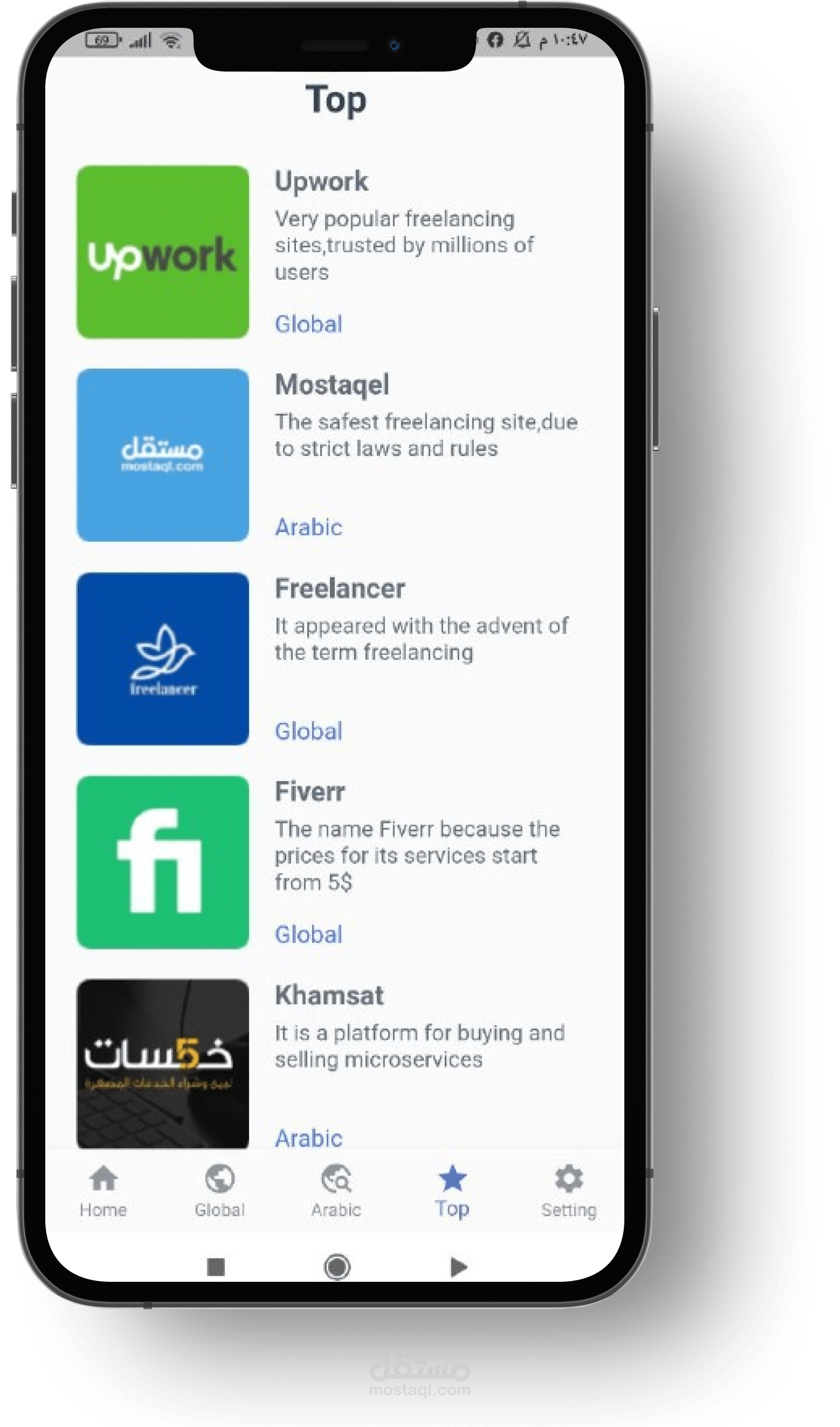تطبيق يتكلم عن اهم منصات العمل الحر العالمية والعربية والافضل فيهم ومميزاتهم