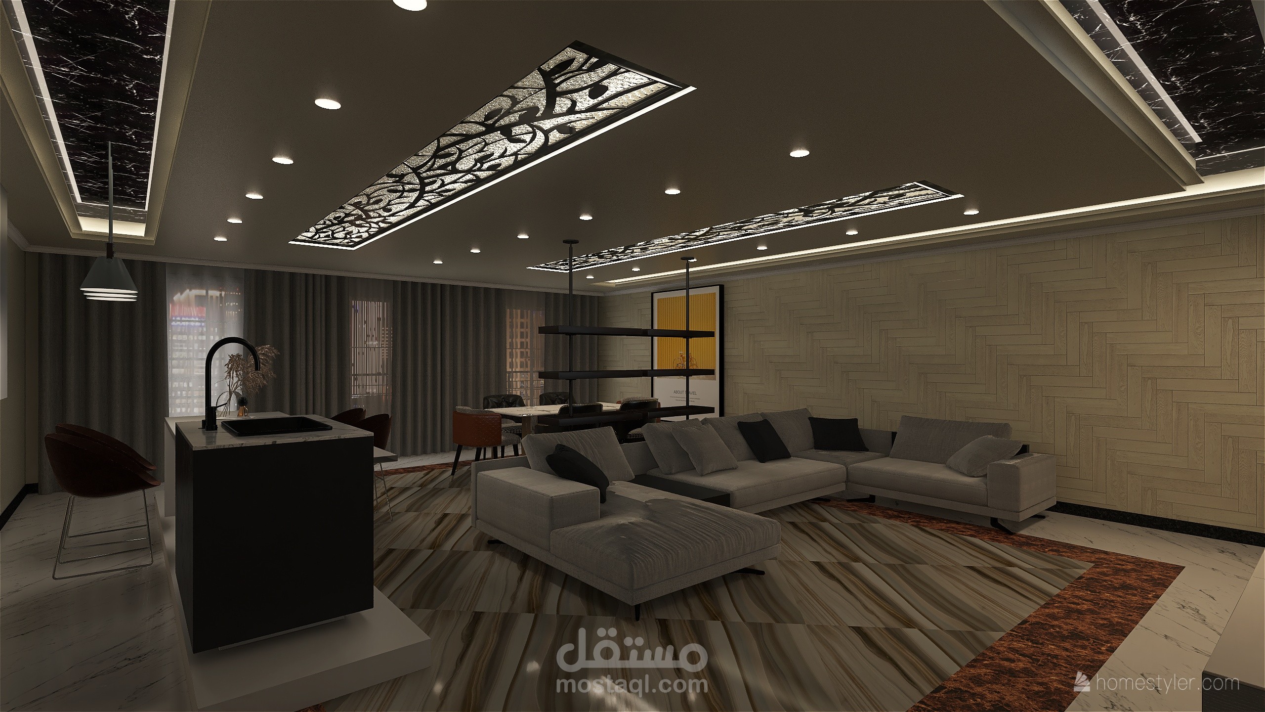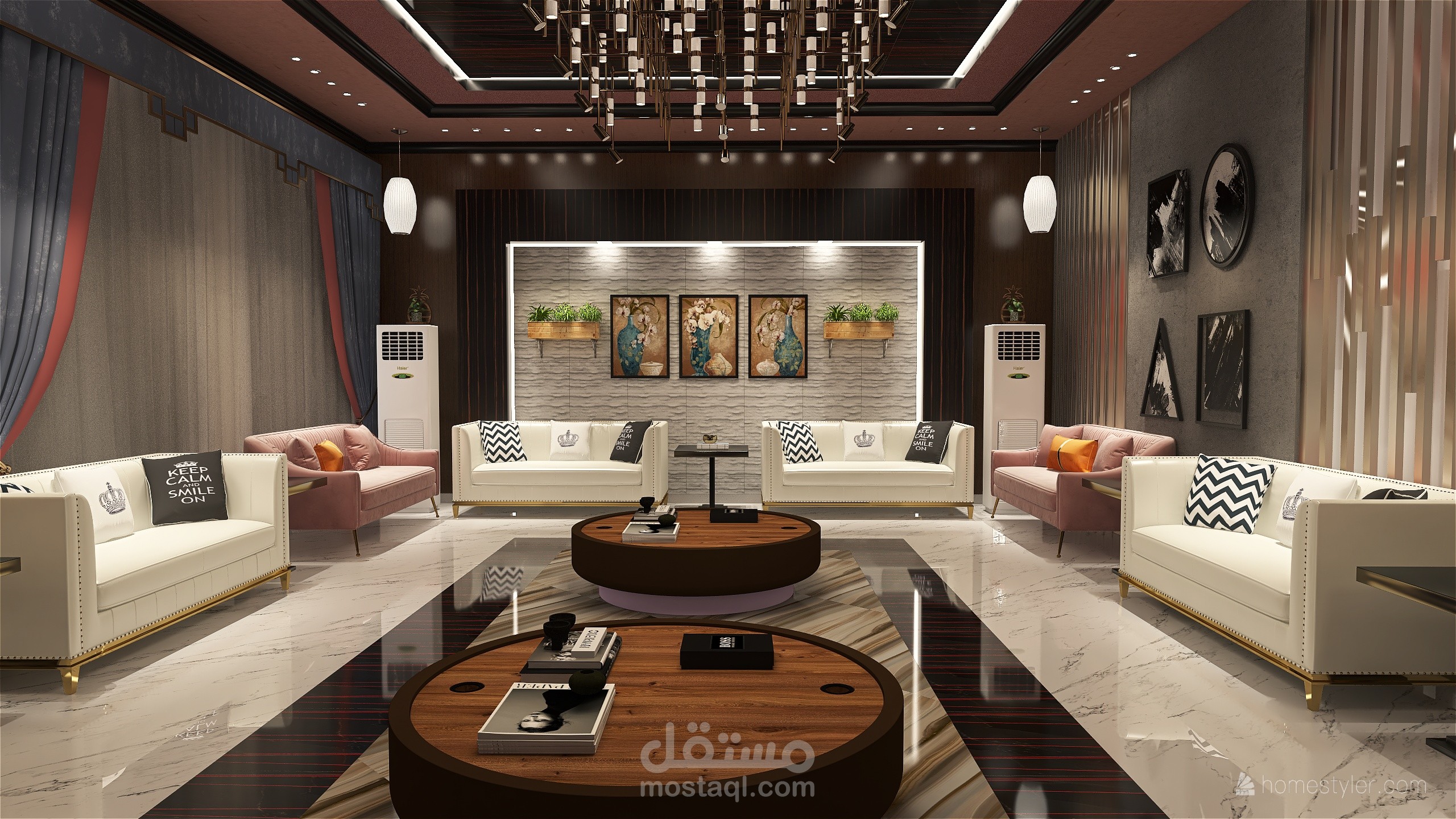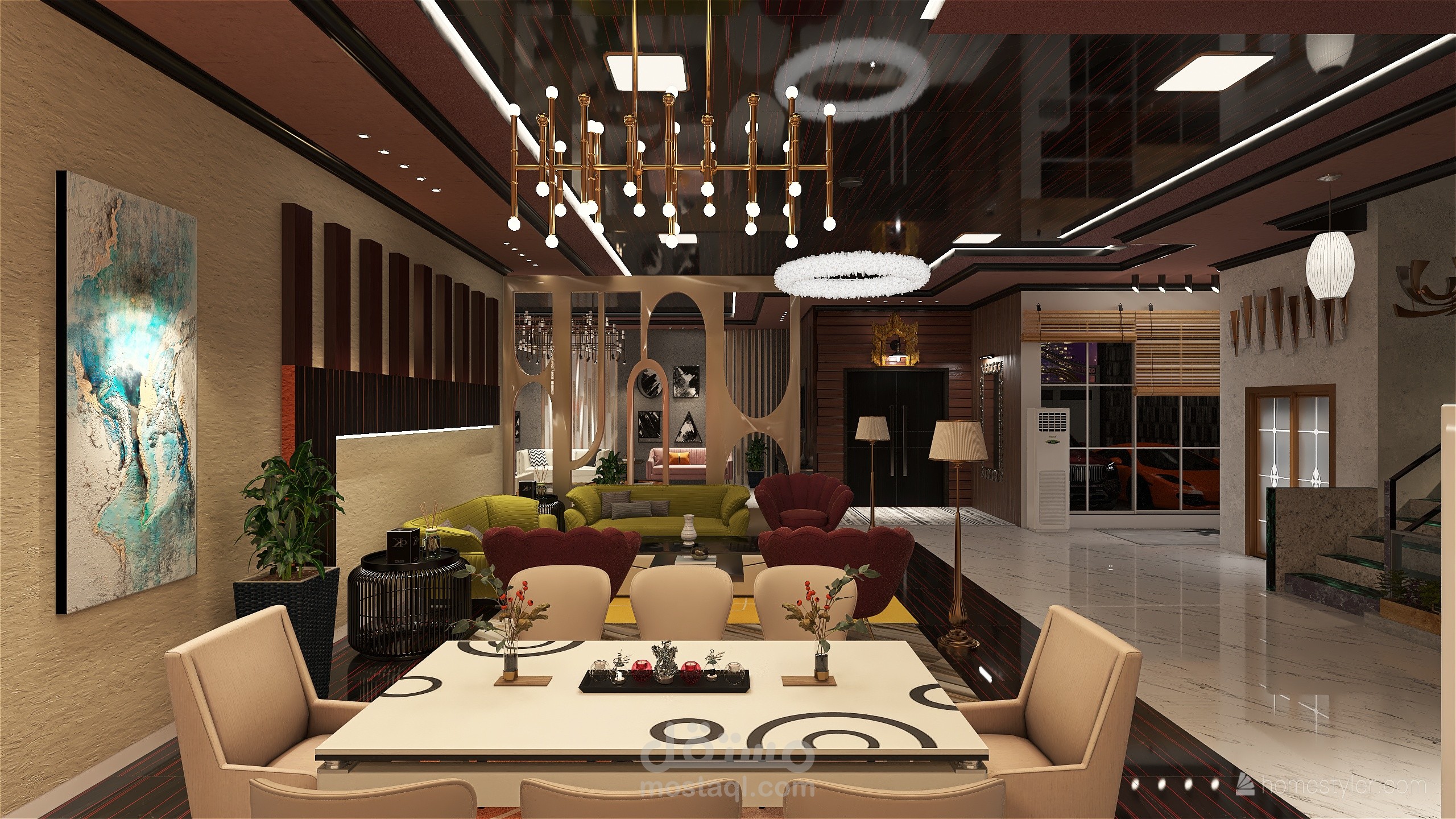 تصميم داخلي لفيلا (مجلس رجال- ومجلس نساء .بالاضافة للمداخل الرئيسيه ومكان الطعام )