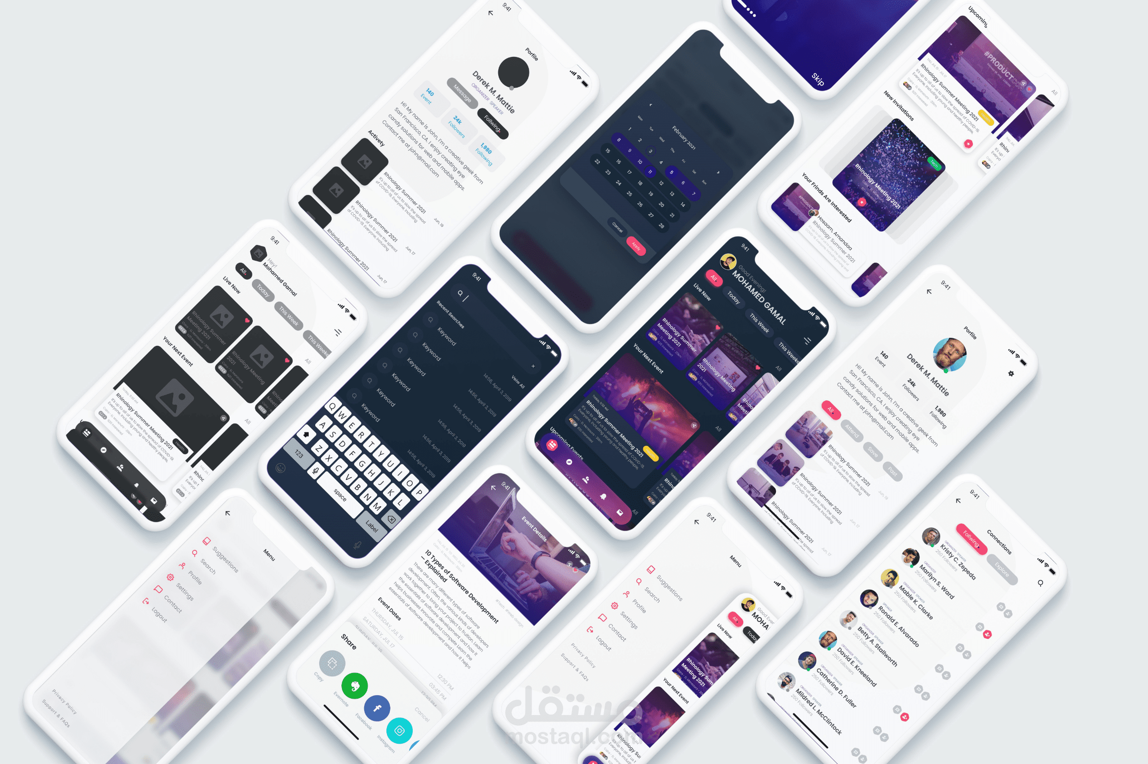 50+ Screens Dark & Light Versions & Wireframe