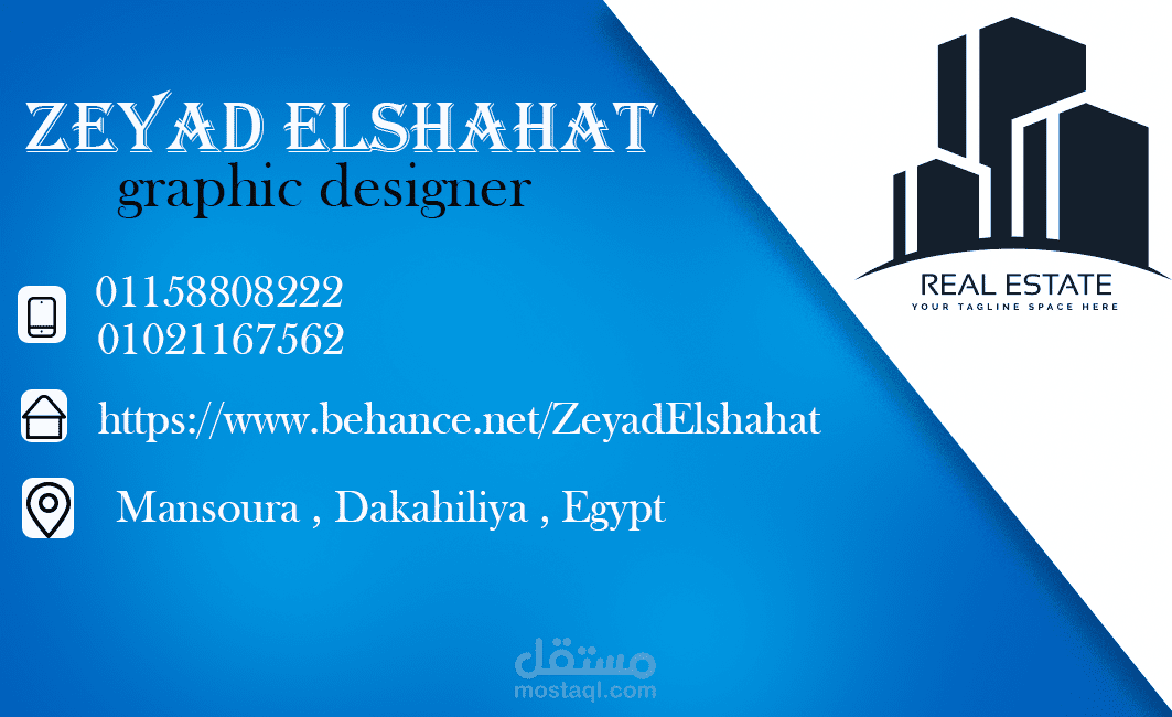 تصميم خاص بكارت شخصى لجرافيك ديزاينر يعمل فى شركة للتعمير والإنشاء تم تصميمه على برنامج الفوتوشوب واليسترتور