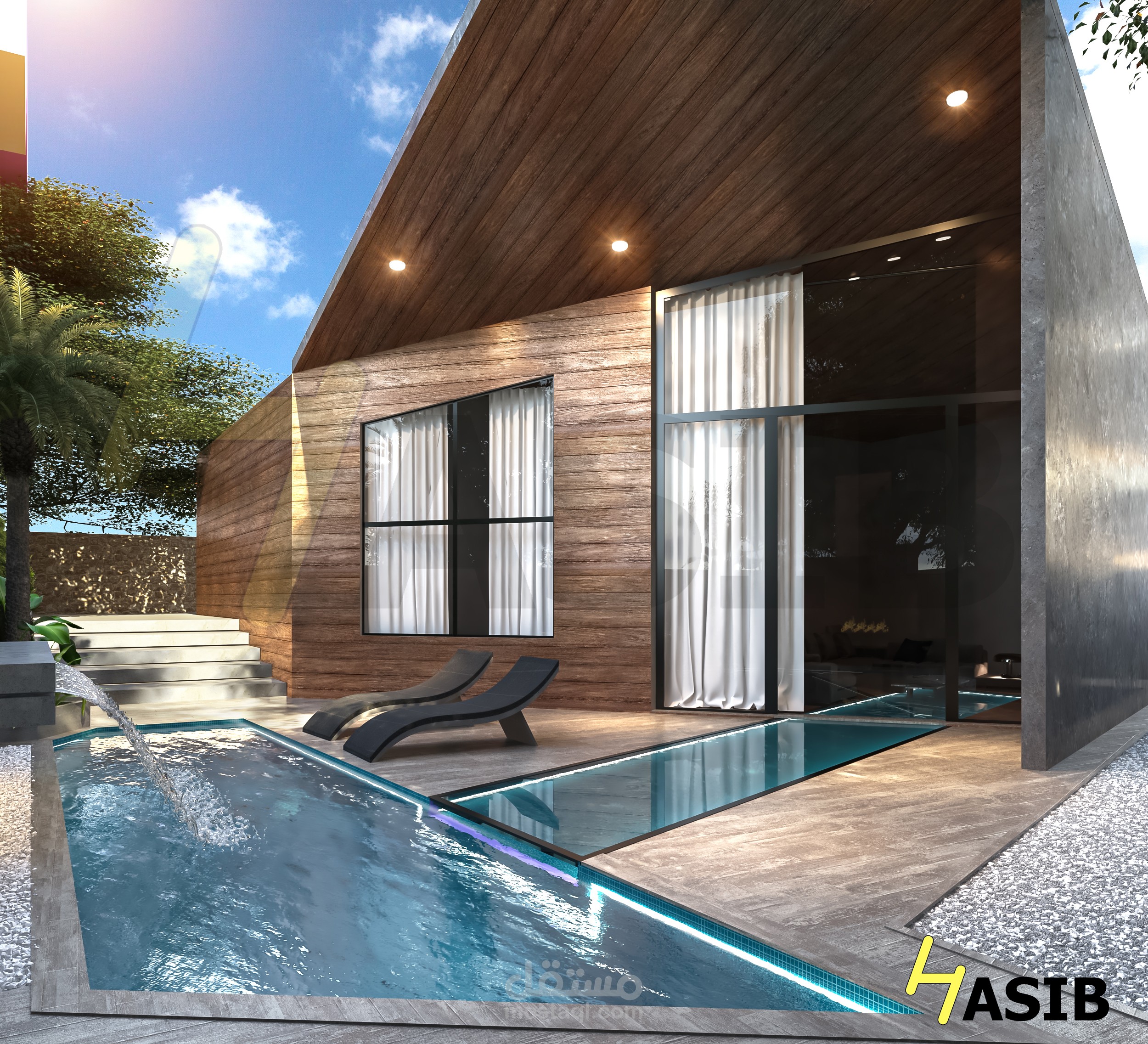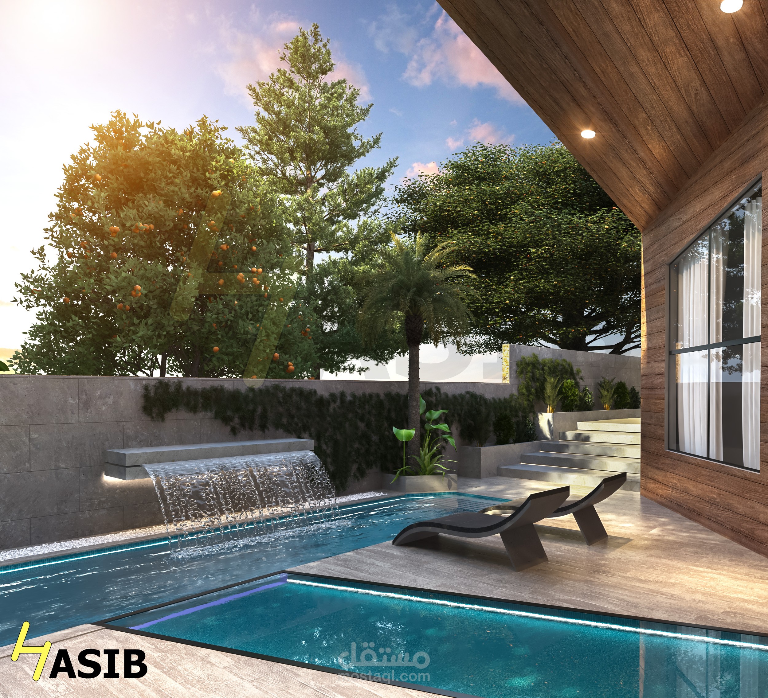 تم تصميم الفناء الخلفي لمنزل صيفي (كوخ) حسب طلب العميل مع تقديم الملفات التنفيذية والمواد المستخدمة