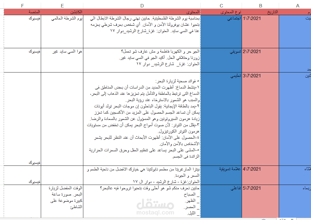 كتابة خطة المحتوى لمكان ترفيهي على البحر