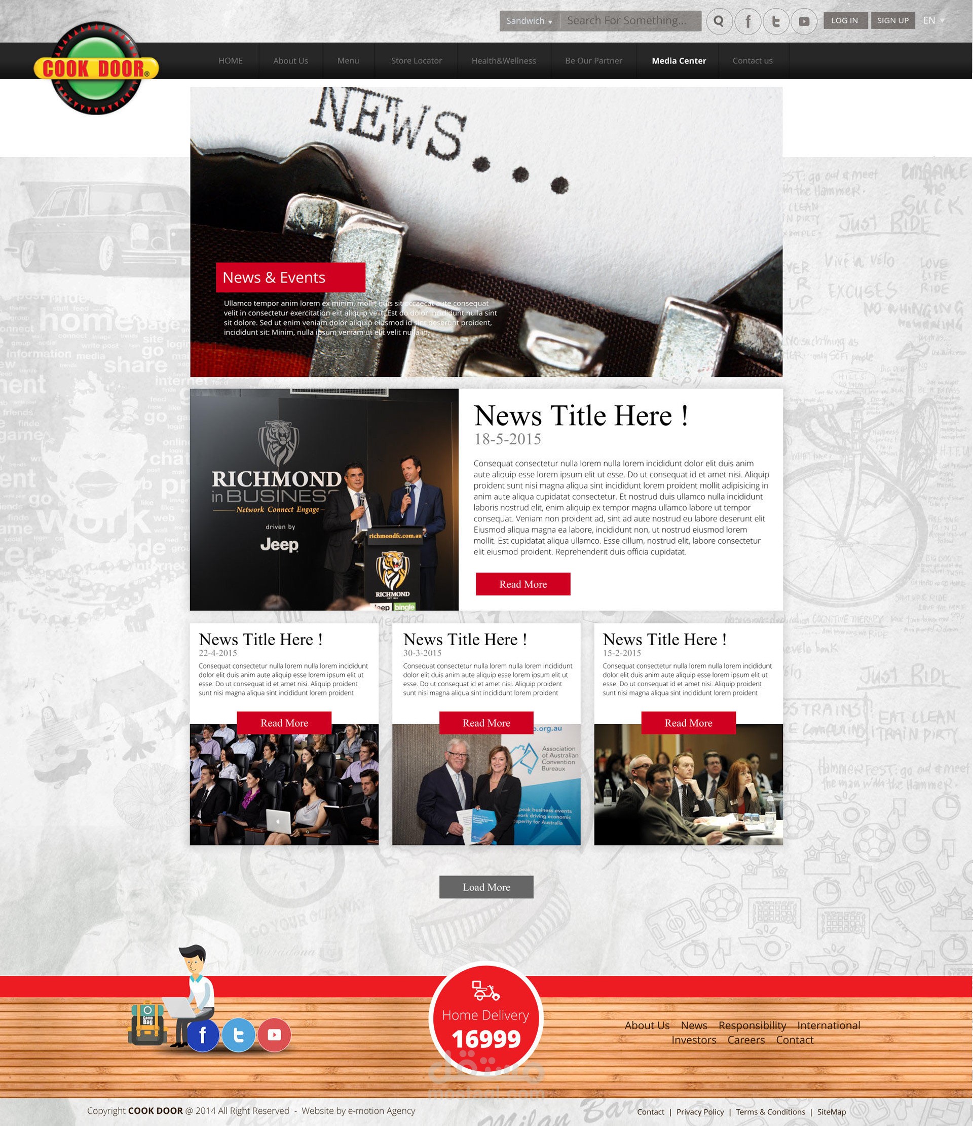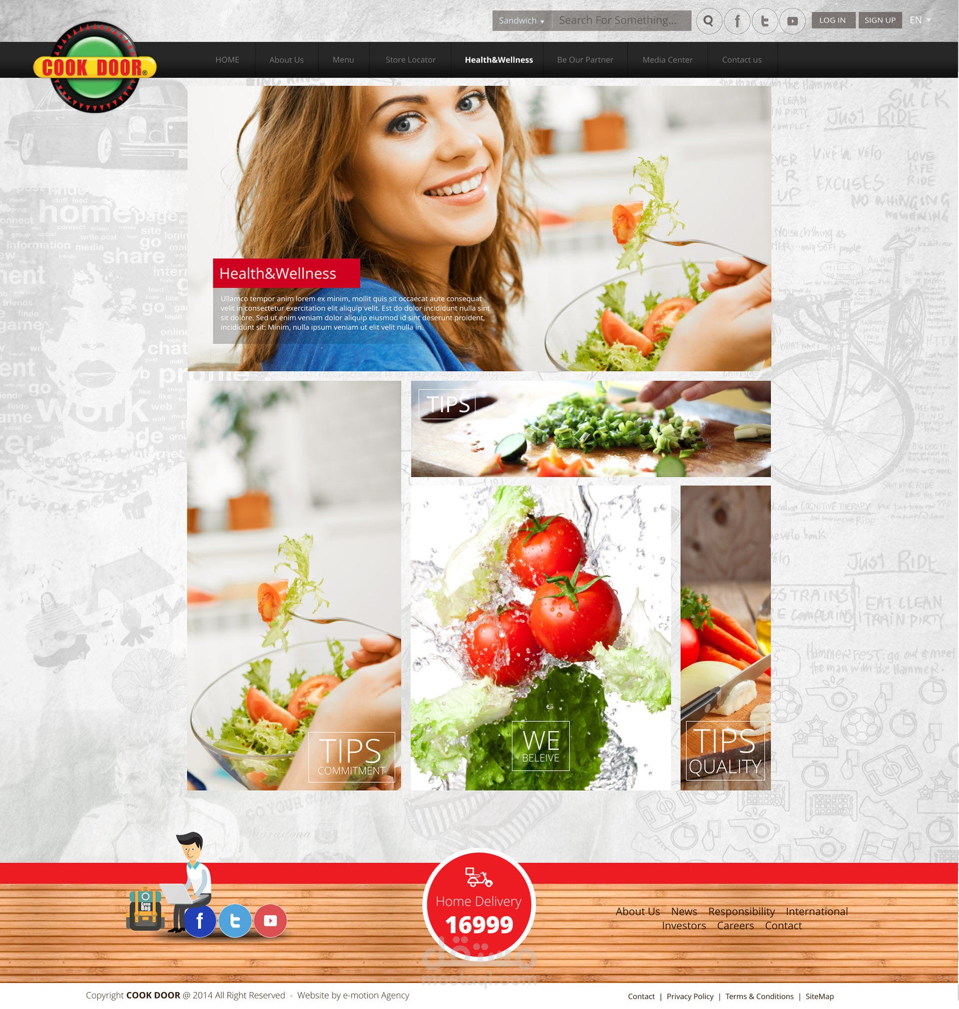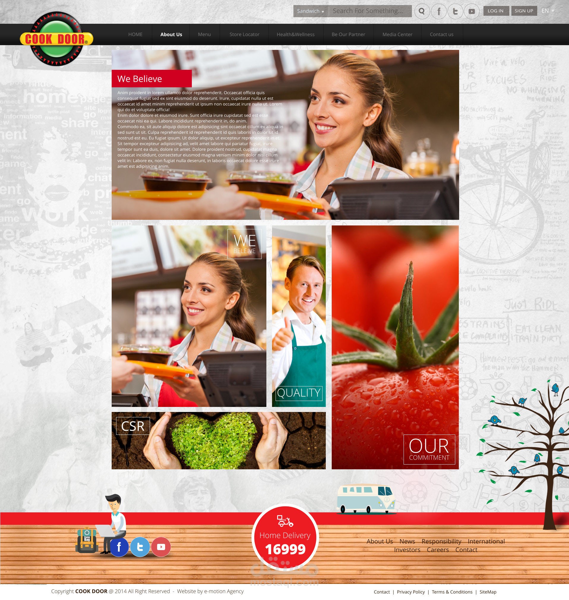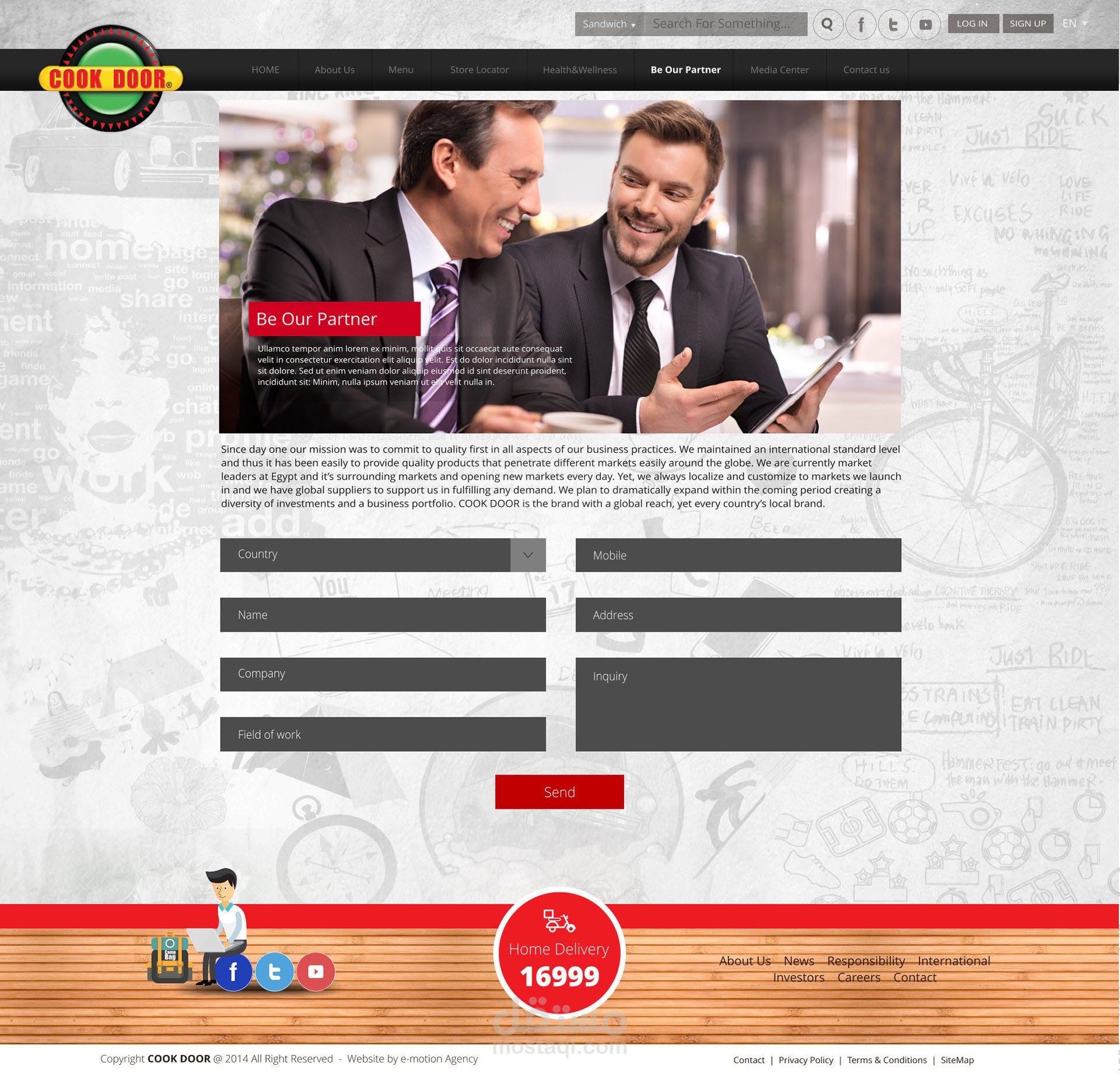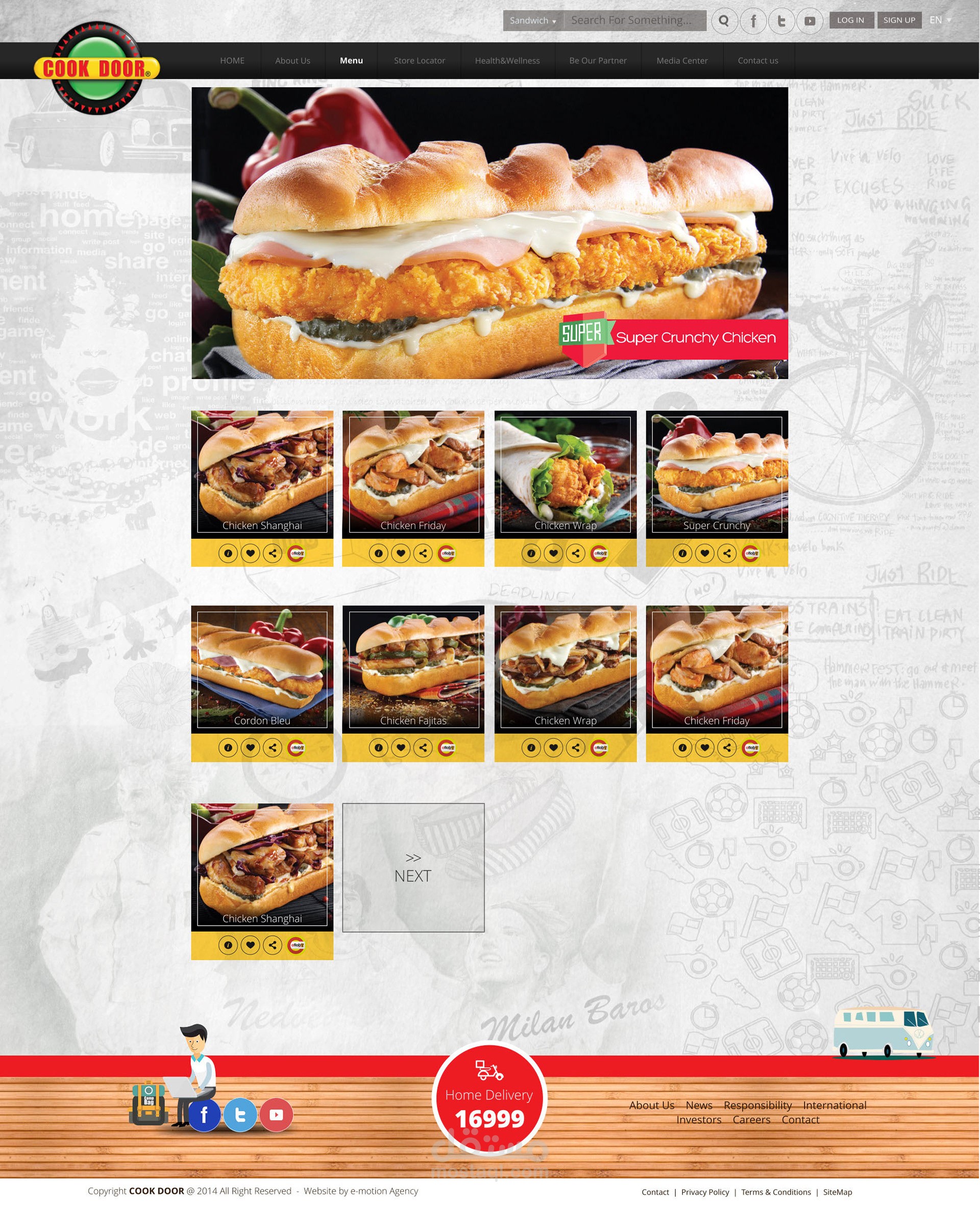 تصميم ويب سايت مطعم كووك دوور الحالي بإستخدام الهوية الخاصة به حيث كانت قائمة علي الأهتمامات الخاصة بالعملاء وربطها بالفروع مثال هناك من يحب كرة القدم فكانت هناك فروع لها طابع كره القدم من بوسترات ودعاية وأخري تصوير او سوشيال