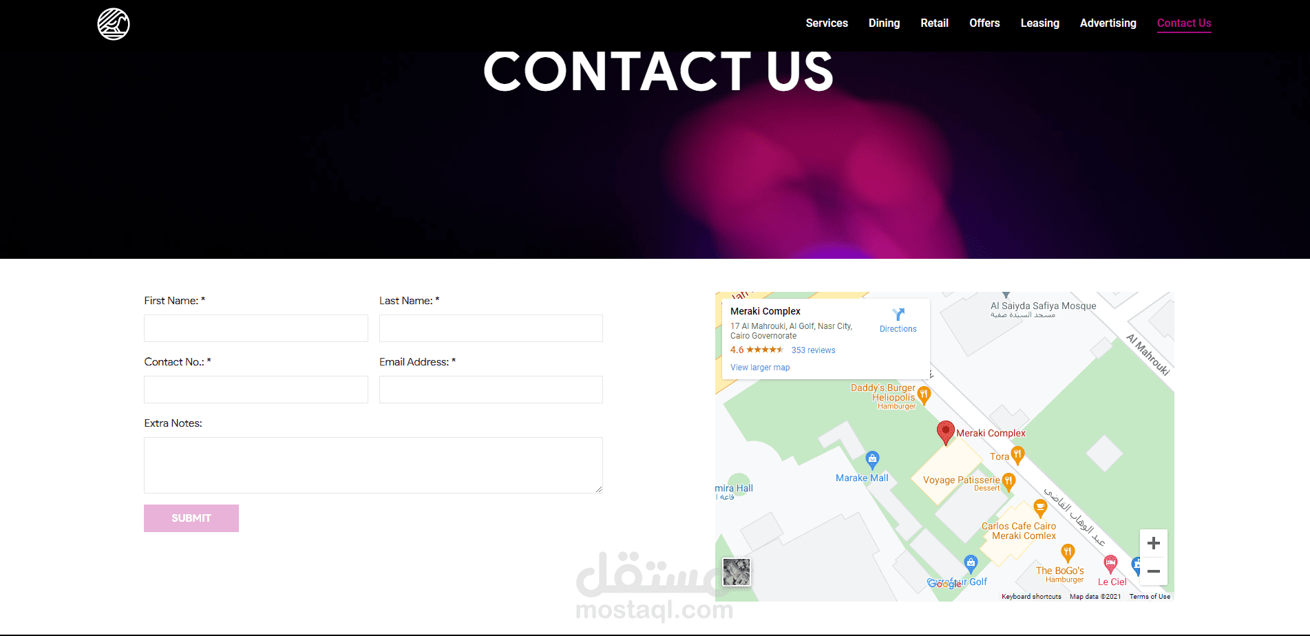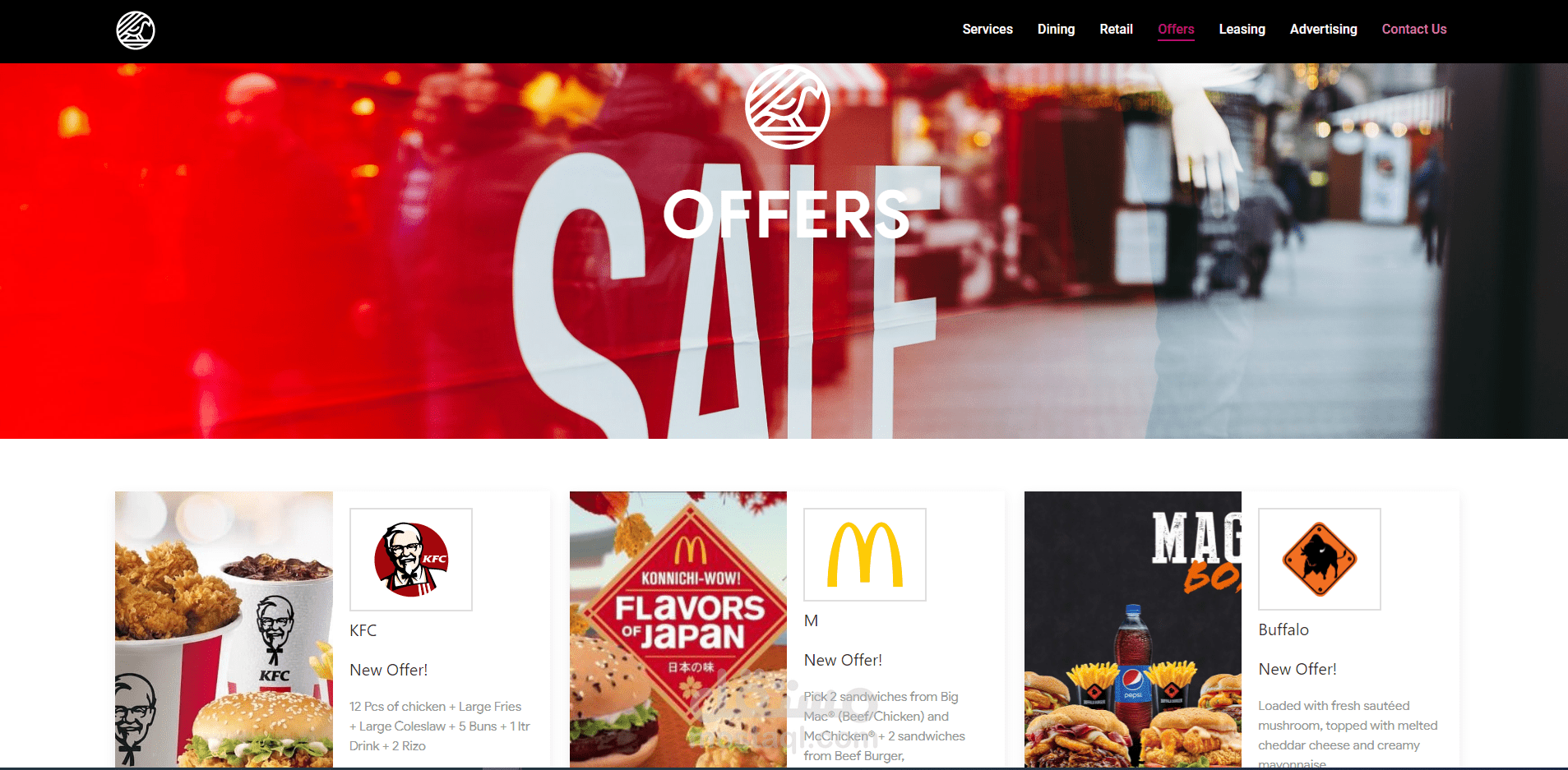 موقع لمول تجارى مصرى يقوم بعرض المطاعم والكفيهات المتواجده بداخله والعروض المتاحه با المطاعم , تم عمل سيستم لتغير والتحكم فى محتوى الموقع