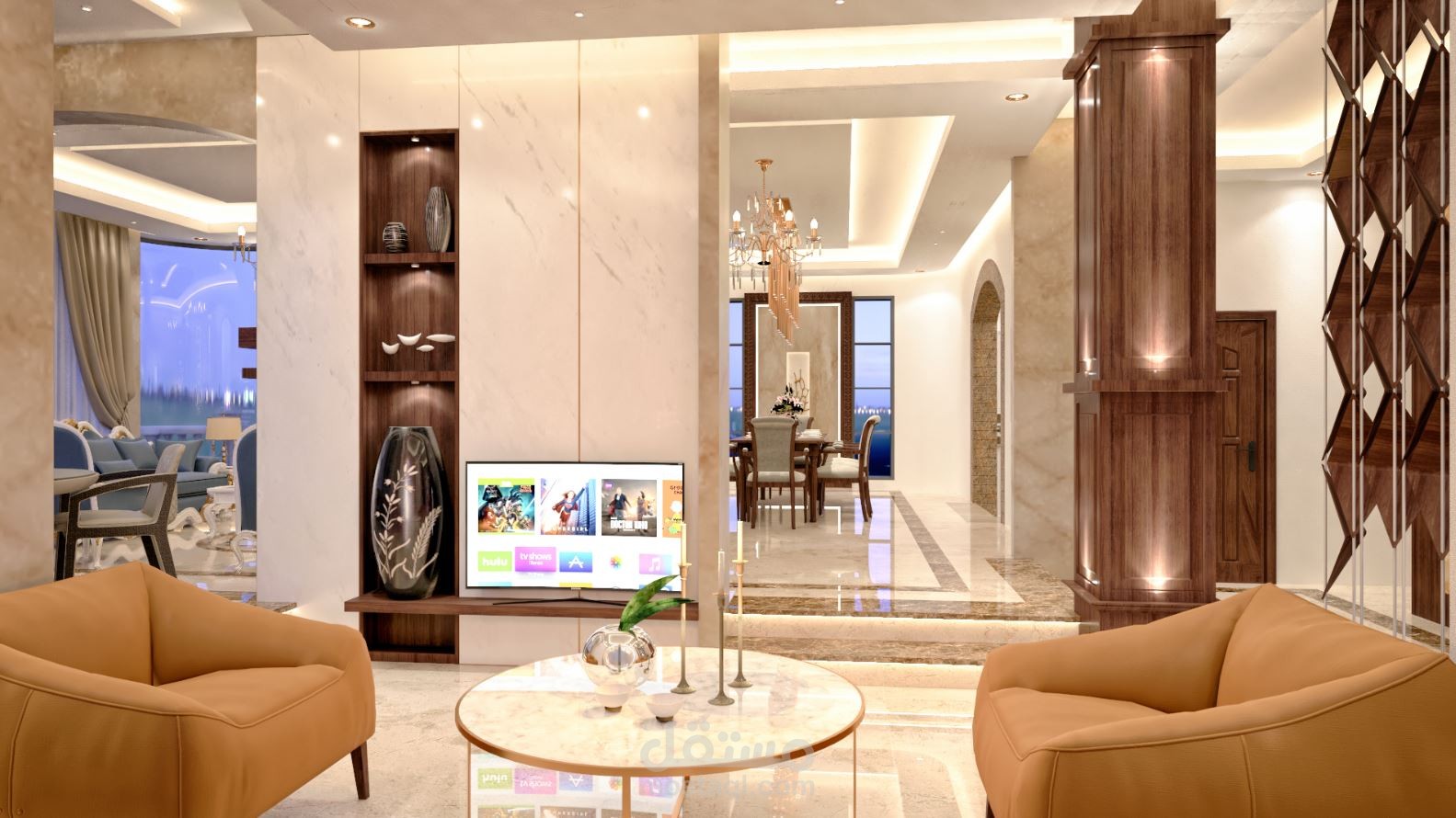 يتضمن المدخل و صالون و طعام و اركان جلوس مع الحمام الخاص