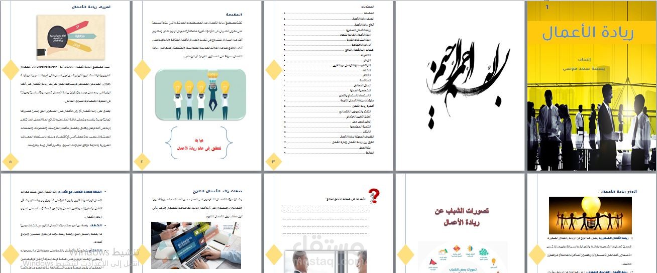 إعداد حقيبة تدريبية عن ريادة الأعمال شاملة ملف وورد وعرض بوربوينت بصور وتصاميم احترافية