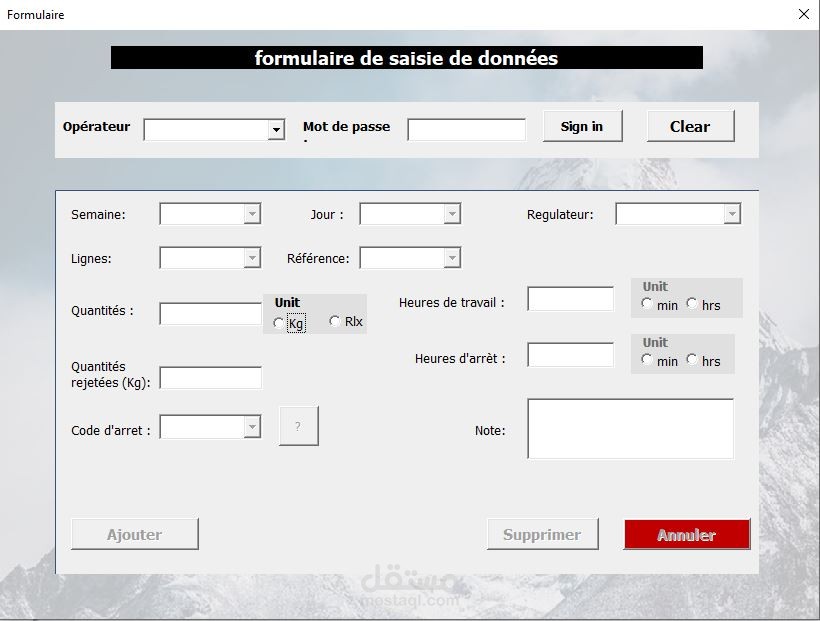 -إدخال معلومات الآلة على سبيل المثال مدة الإشتغال ،مدة التوقف ,نوع العطل لكن بعد تأكيد هوية المستخدم