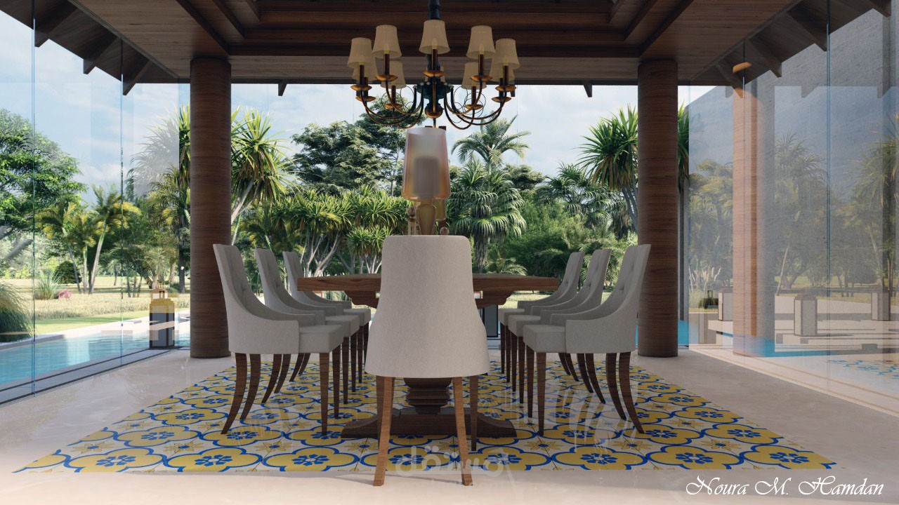 Modern Design of a Dining Room in the Pool