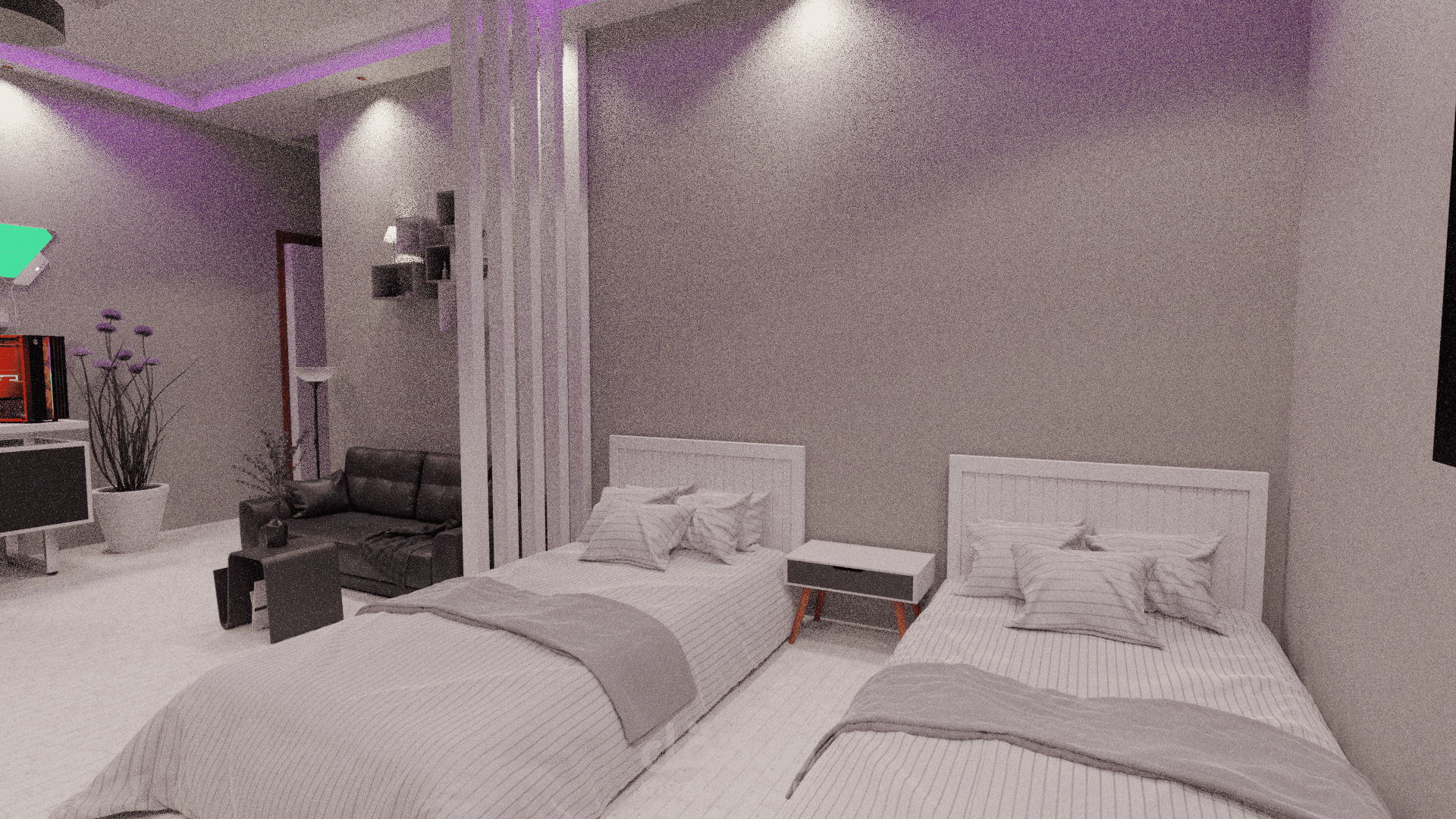 غرفة نوم لشخصين وتقسيم الغرفة بشكل منظم