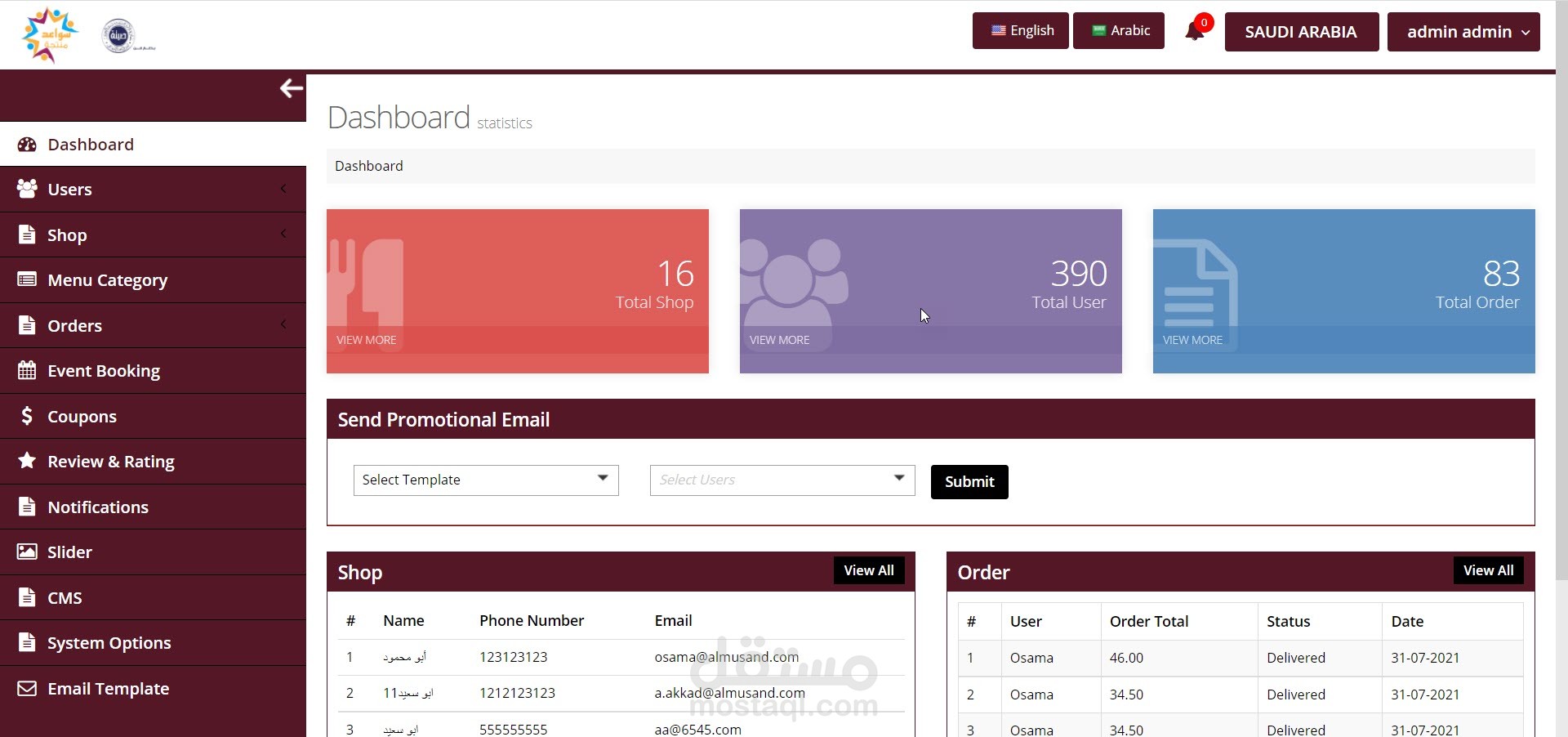 نظام إدارة طلبات المطاعم