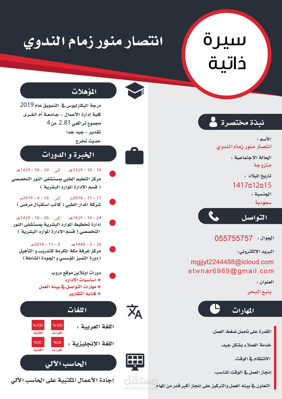 تصميم سيرة ذاتية بصيغة الأنفو جرافيك