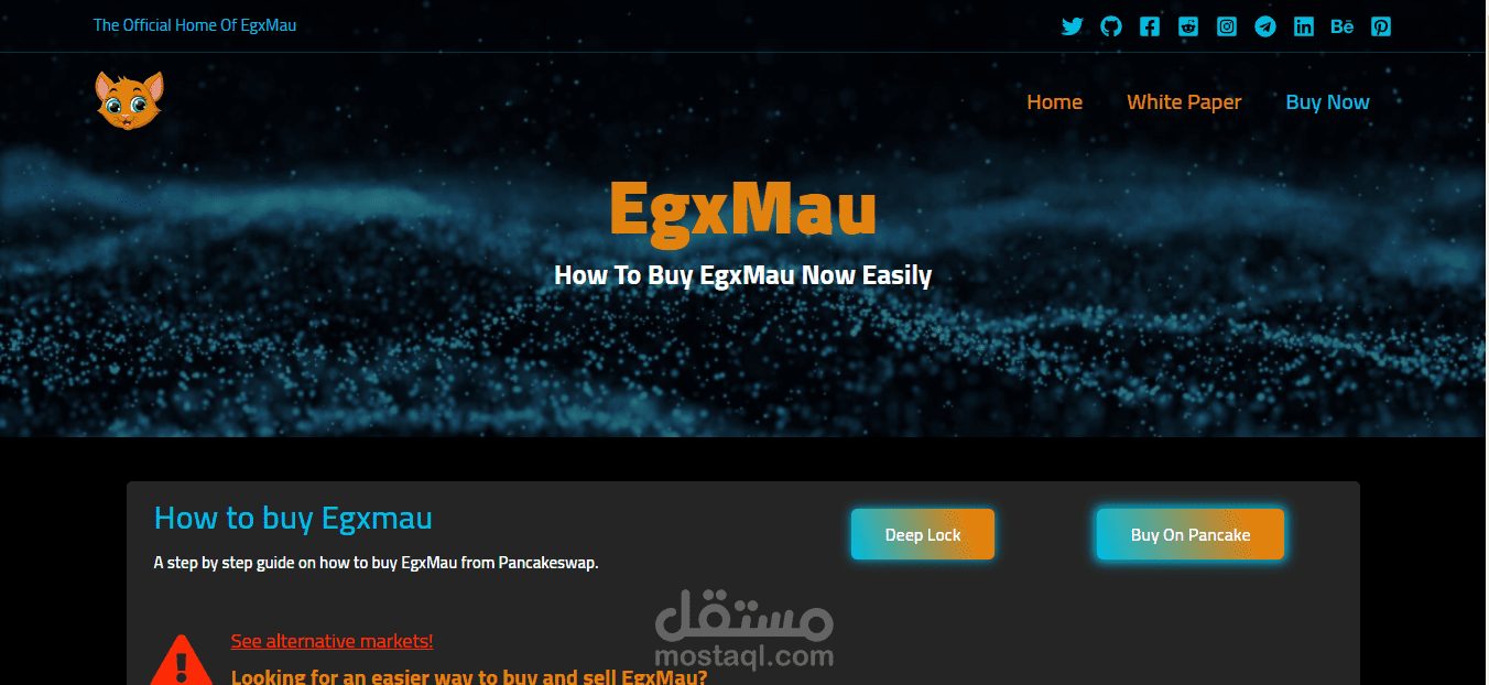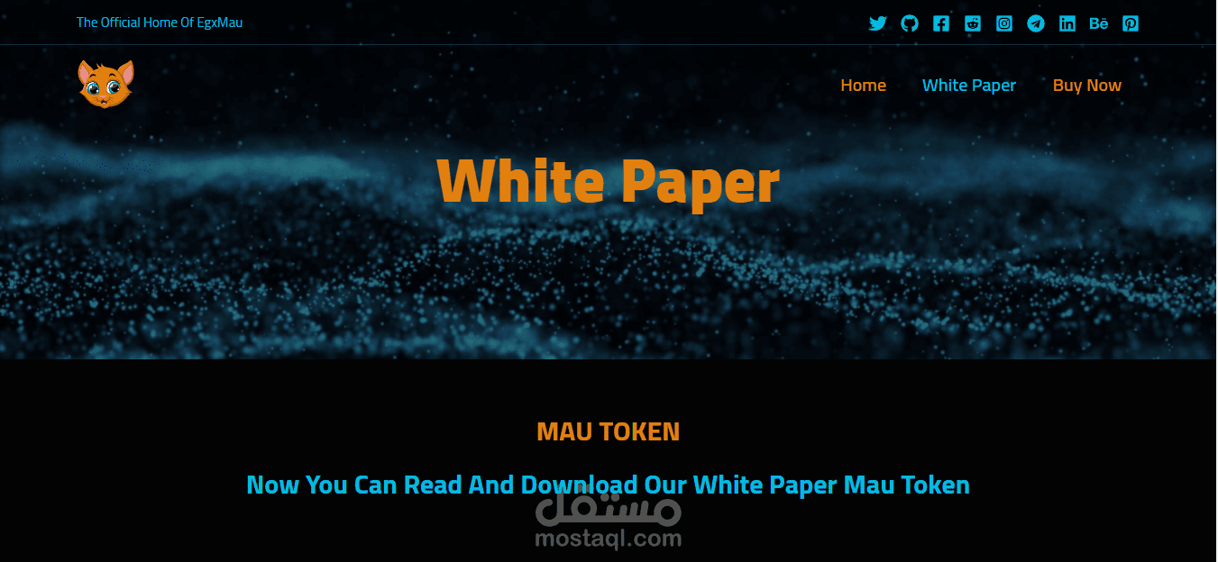 ويتضمن الموقع صفحة ال Home و White Paper و Buy Now