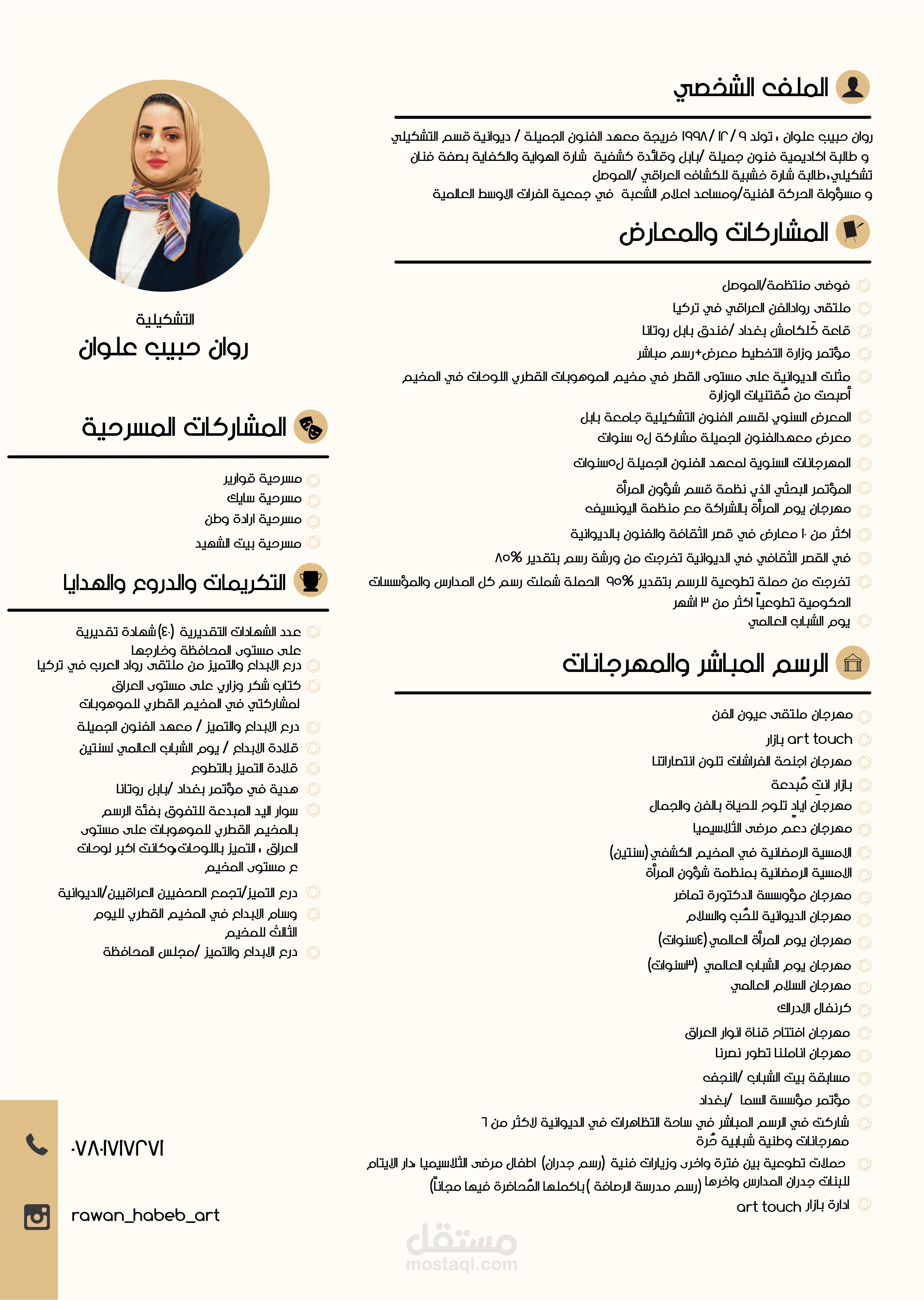تصميم سيرة ذاتية احترافية للفنانة التشكيلية روان حبيب
