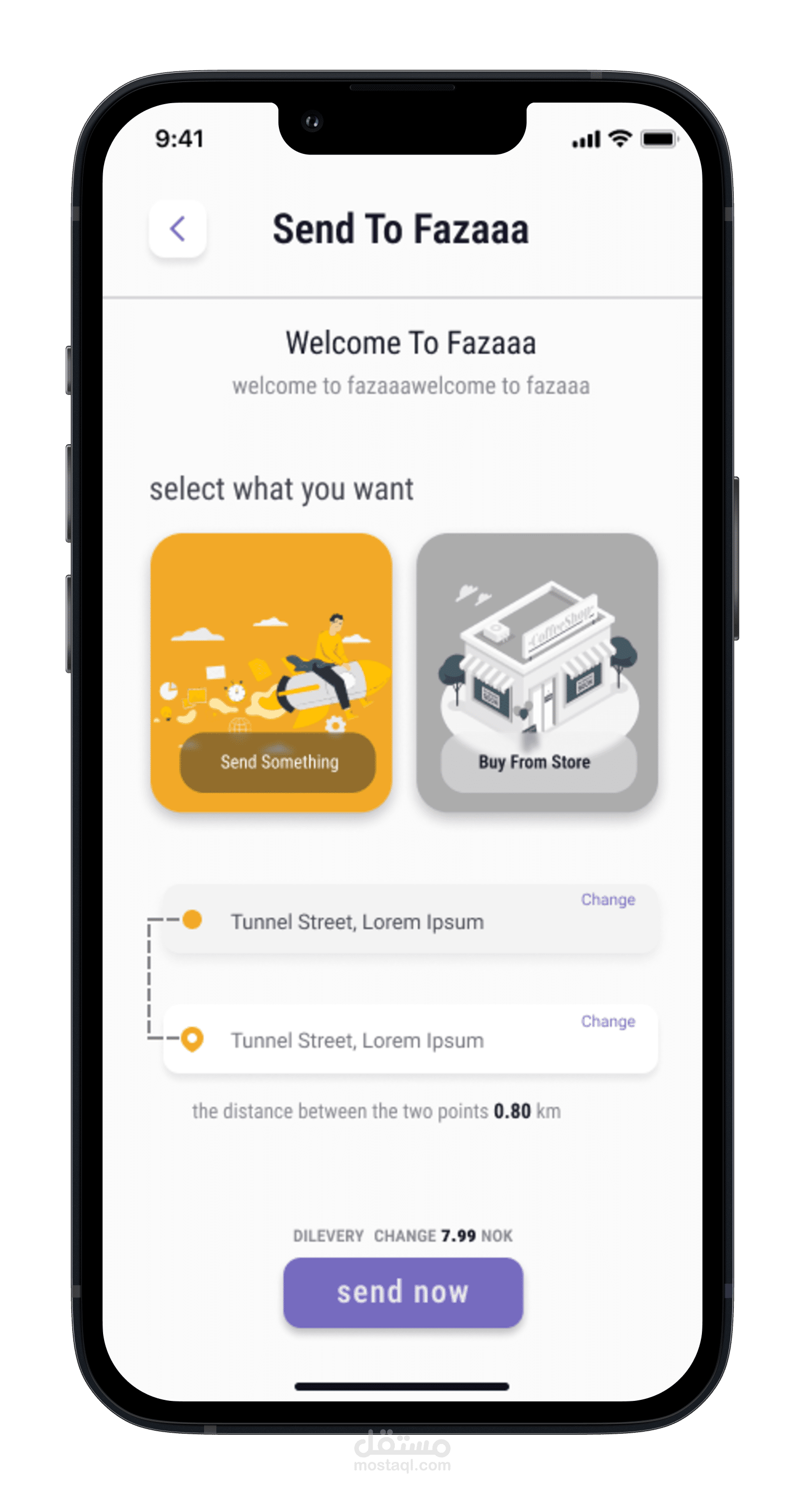 وايضا يوفر التطبيق . خدمة ارسل اشيائك .او اشتر من متجر محدد .