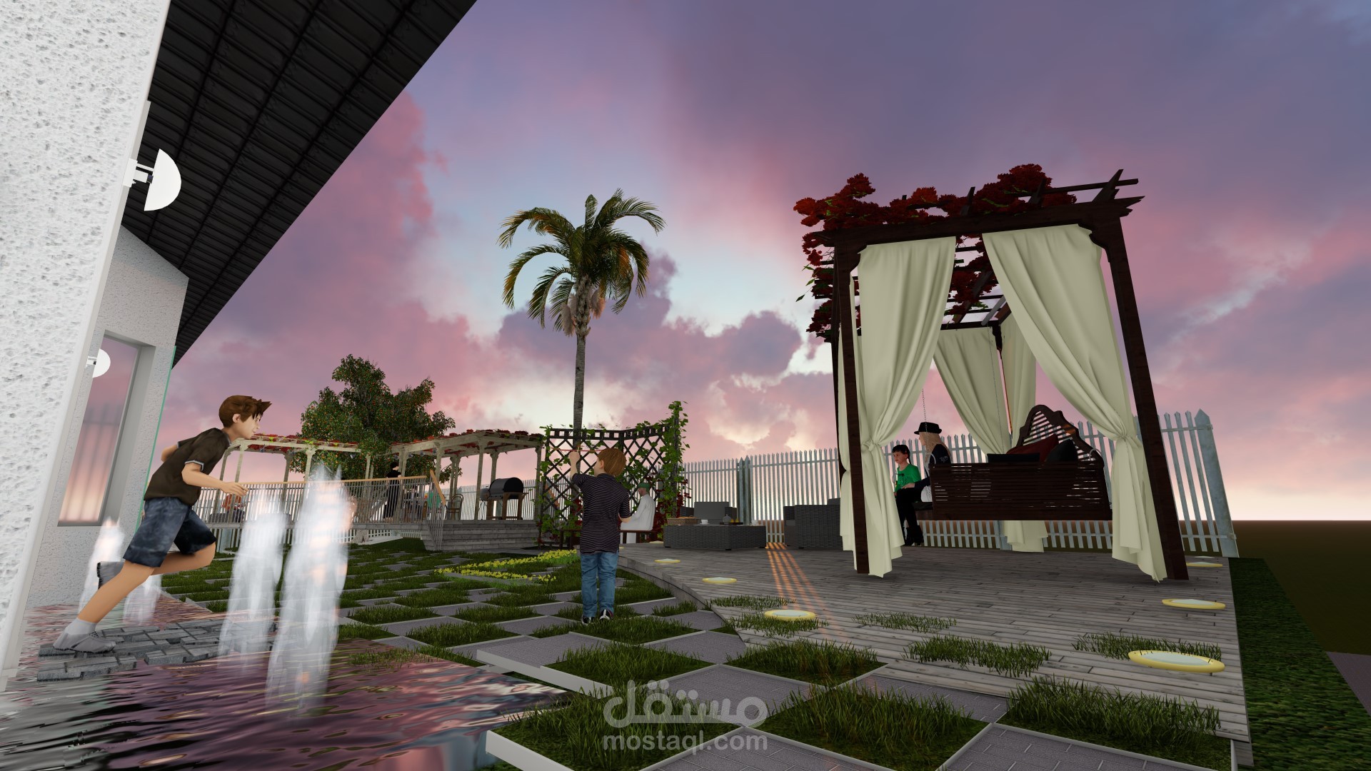 تم تصميم back yard لفيلا بولاية كاليفورنيا علي متطلبات وميزانيه العميل كما تطلب الامر