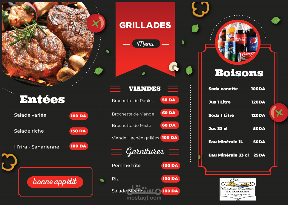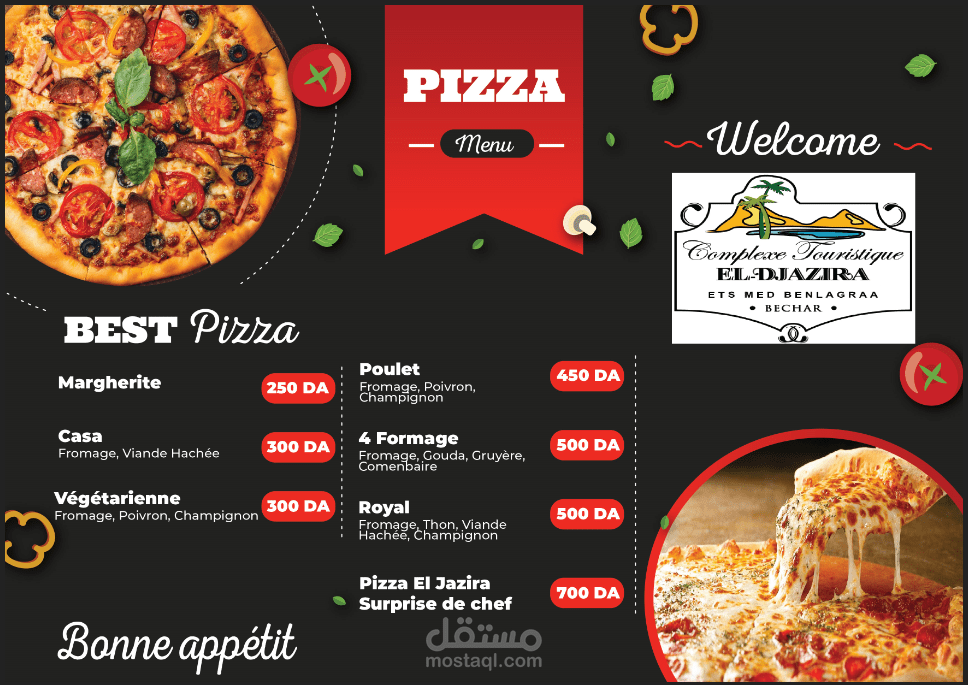 قائمة أكل مصممة حسب الطلب لبيزيريا و مطعم لفندق الجزيرة