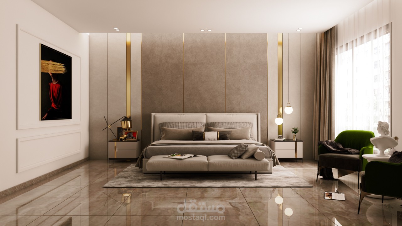 تصميم غرفة نوم مودرن لفيلا في السعودية