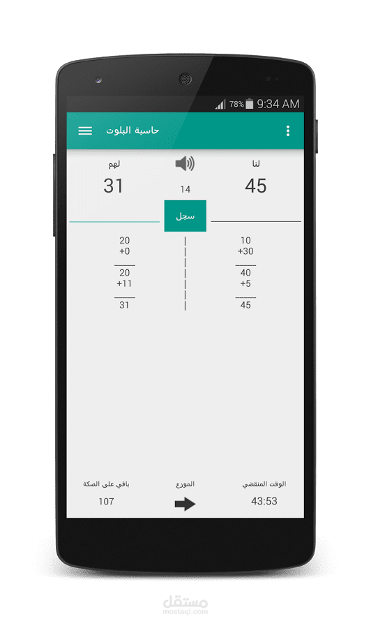 حاسبة البلوت هو برنامج بسيط يسهل تسجيل نتيجة نشرات البلوت يغني عن استخدام الورقة والقلم, حصل البرنامج على شعبية عالية فوصل عدد مستخدمينه اكثر من 145 الف, وبنسبة تقييم في المتجر 4.5/5