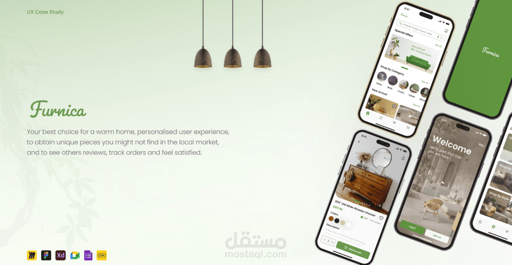 A single vendor iOS e-commerce app for a furniture store called "Furnica ''. Used by employees and housewives aged 25-35 who hate going shopping, but they purchase furniture for their homes based on their needs and wants using various payment methods.