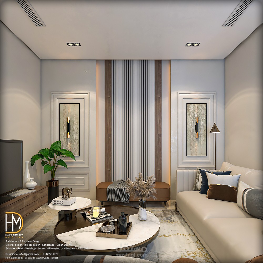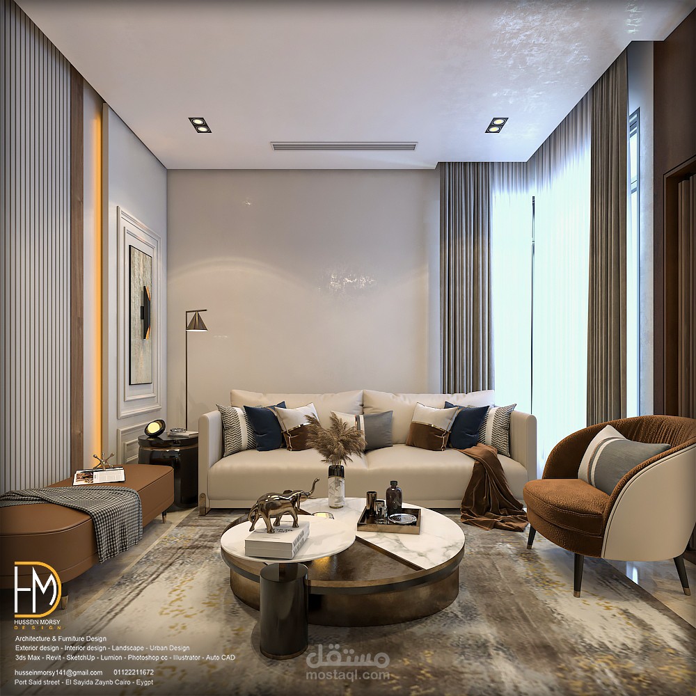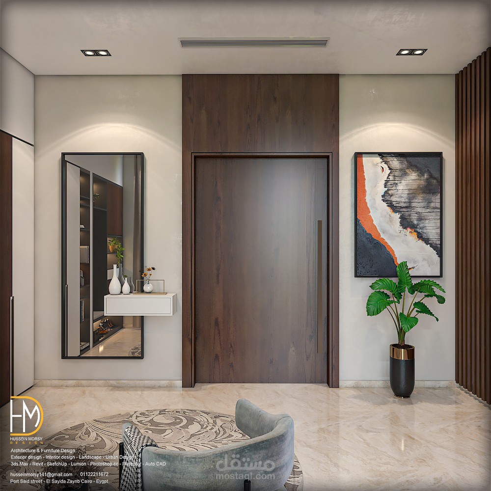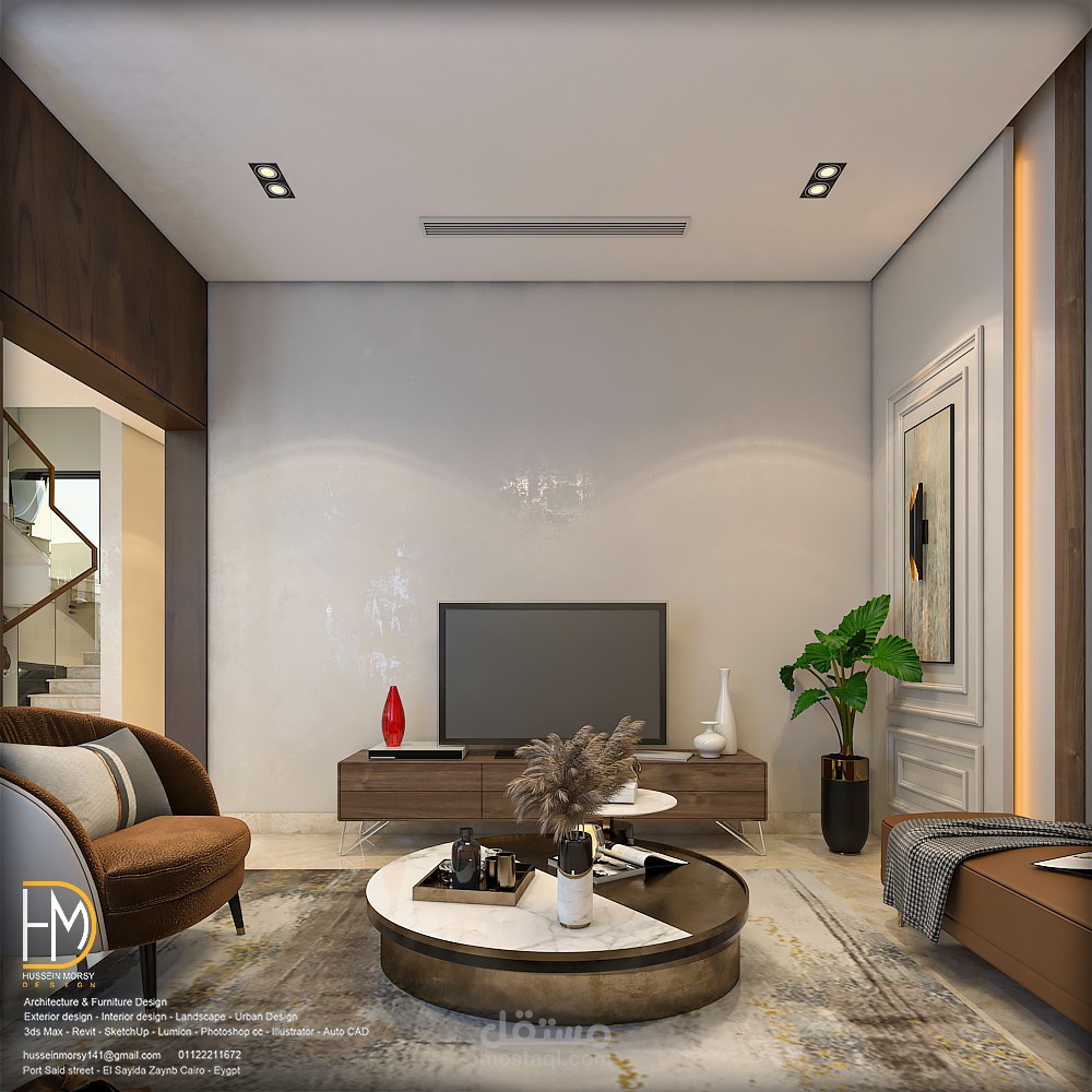 تصميم داخلي مودرن للدور الارضي لفيلا سكنية بالسعودية