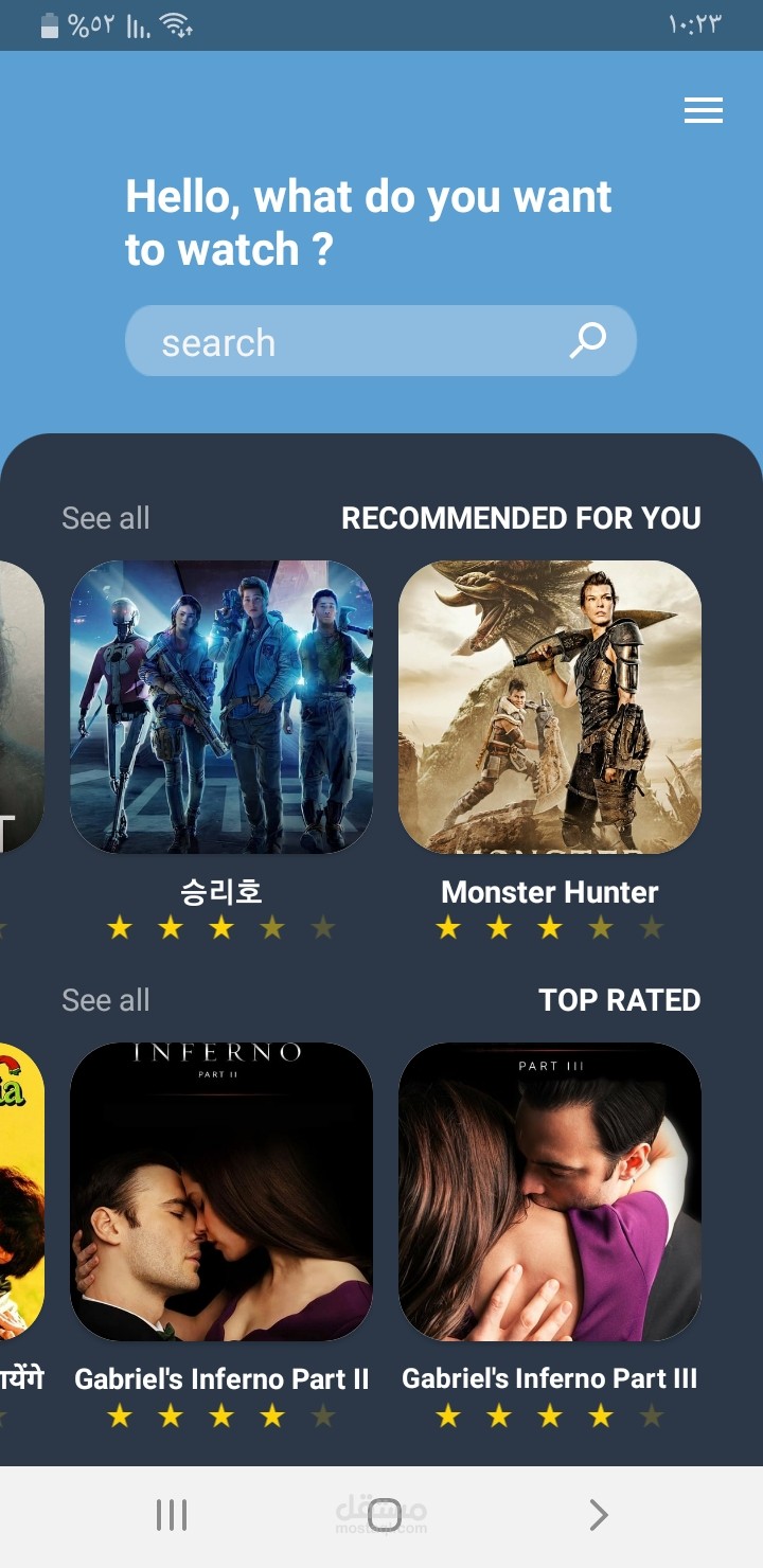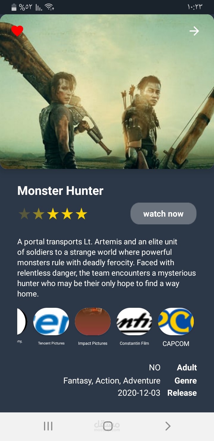 A large library of movies with full details of each movie evaluation, title, description, actors and producing companies, with the ability to search for any movie, view famous movies and make your own favorite movie list