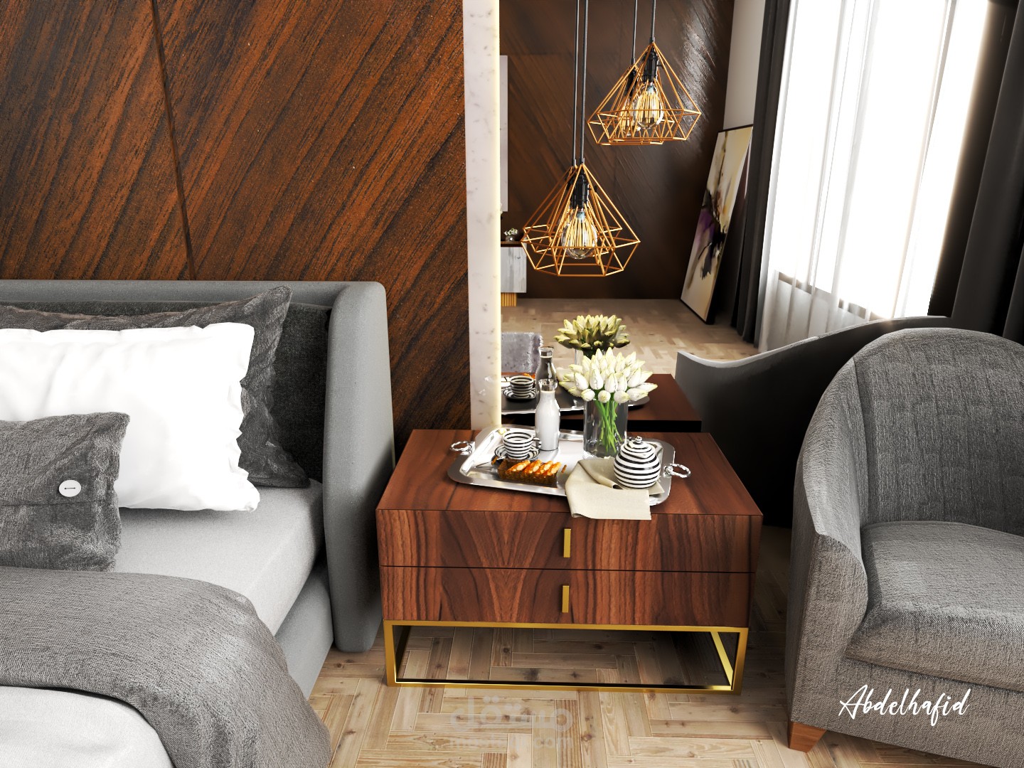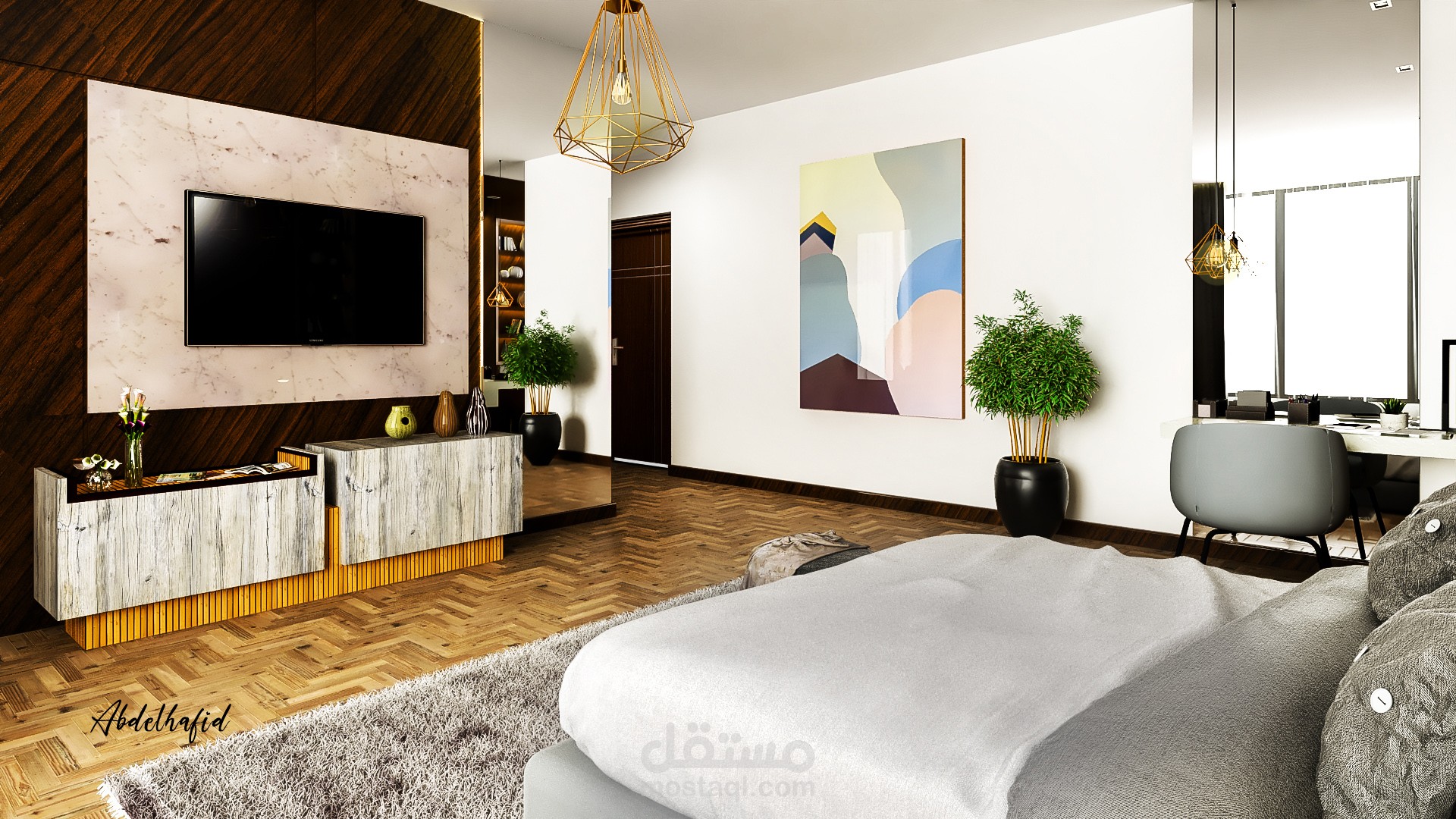 تصميم داخلي لغرفة نوم حديثة في جو دافئ