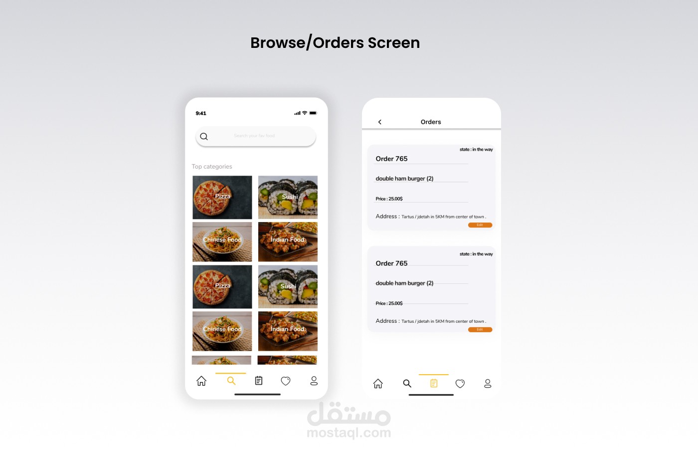 تصميم واجهة وتجربة المستخدم لتطبيق توصيل الطعام