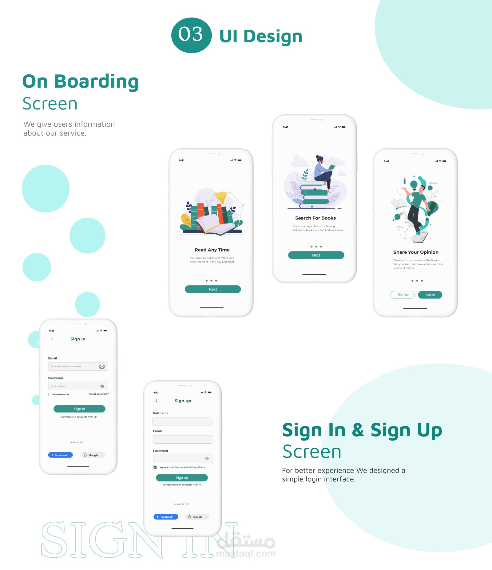 تصميم واجهة المستخدم لتطبيق موبايل قراءة الكتب الالكترونية.