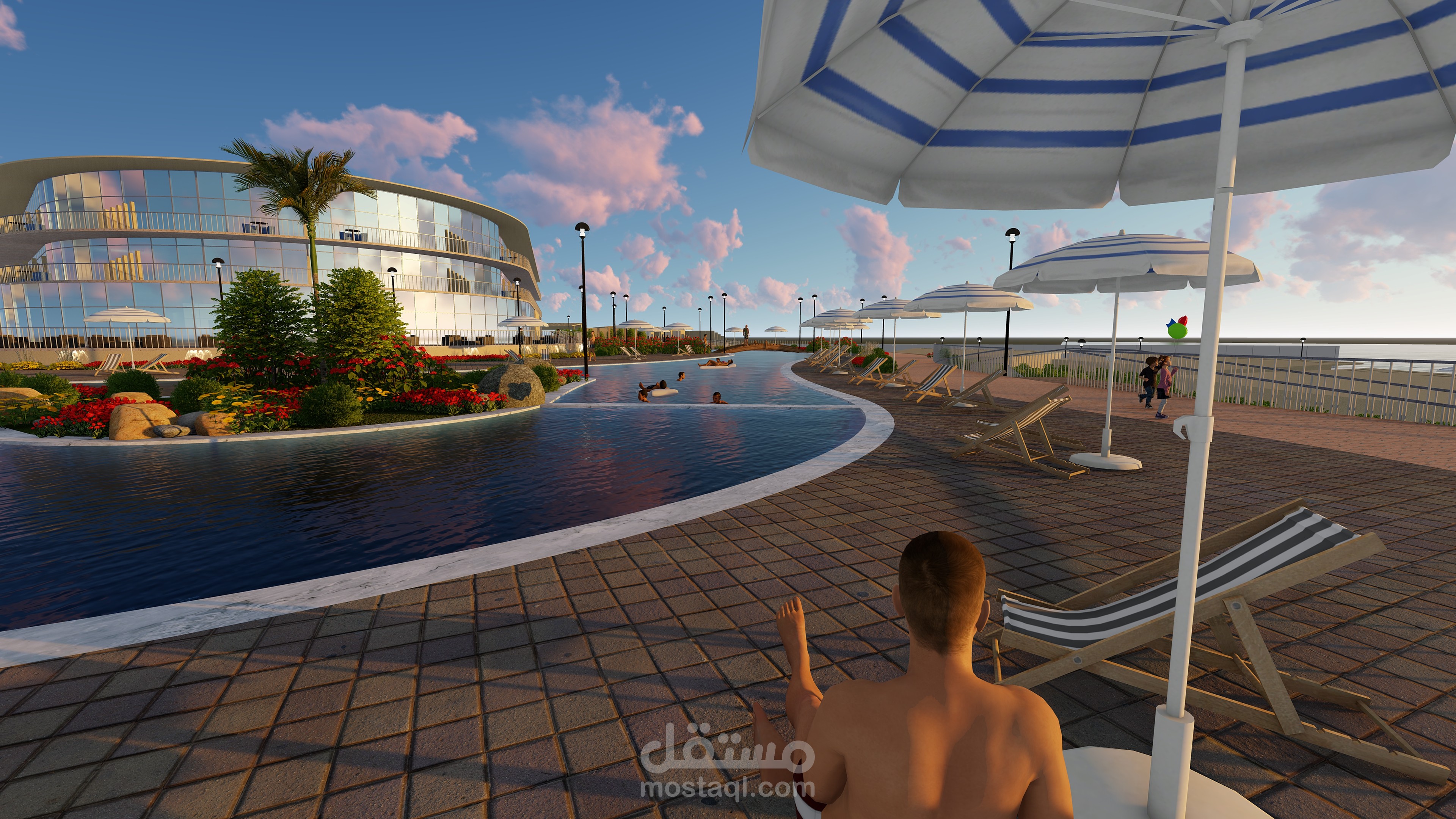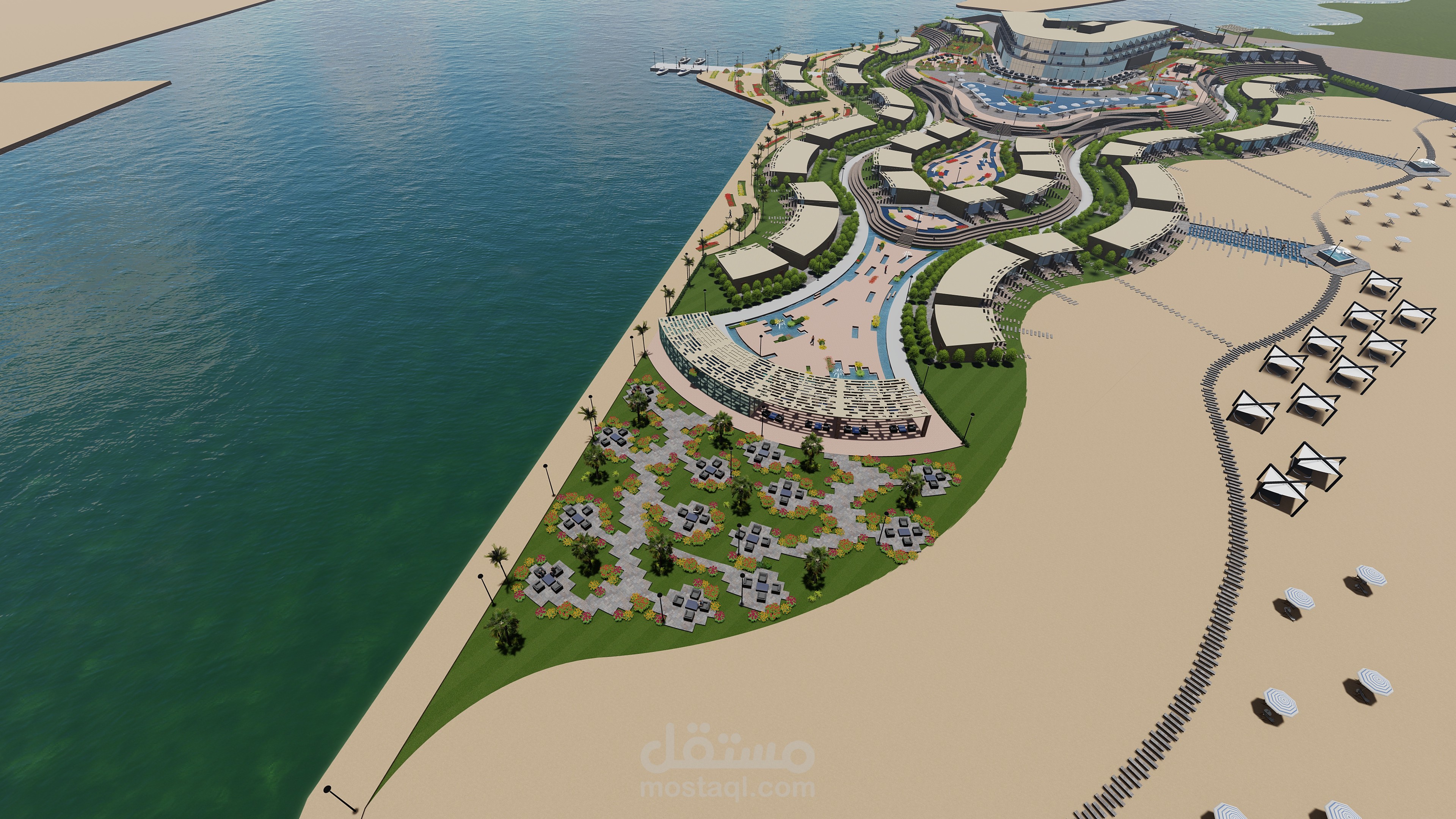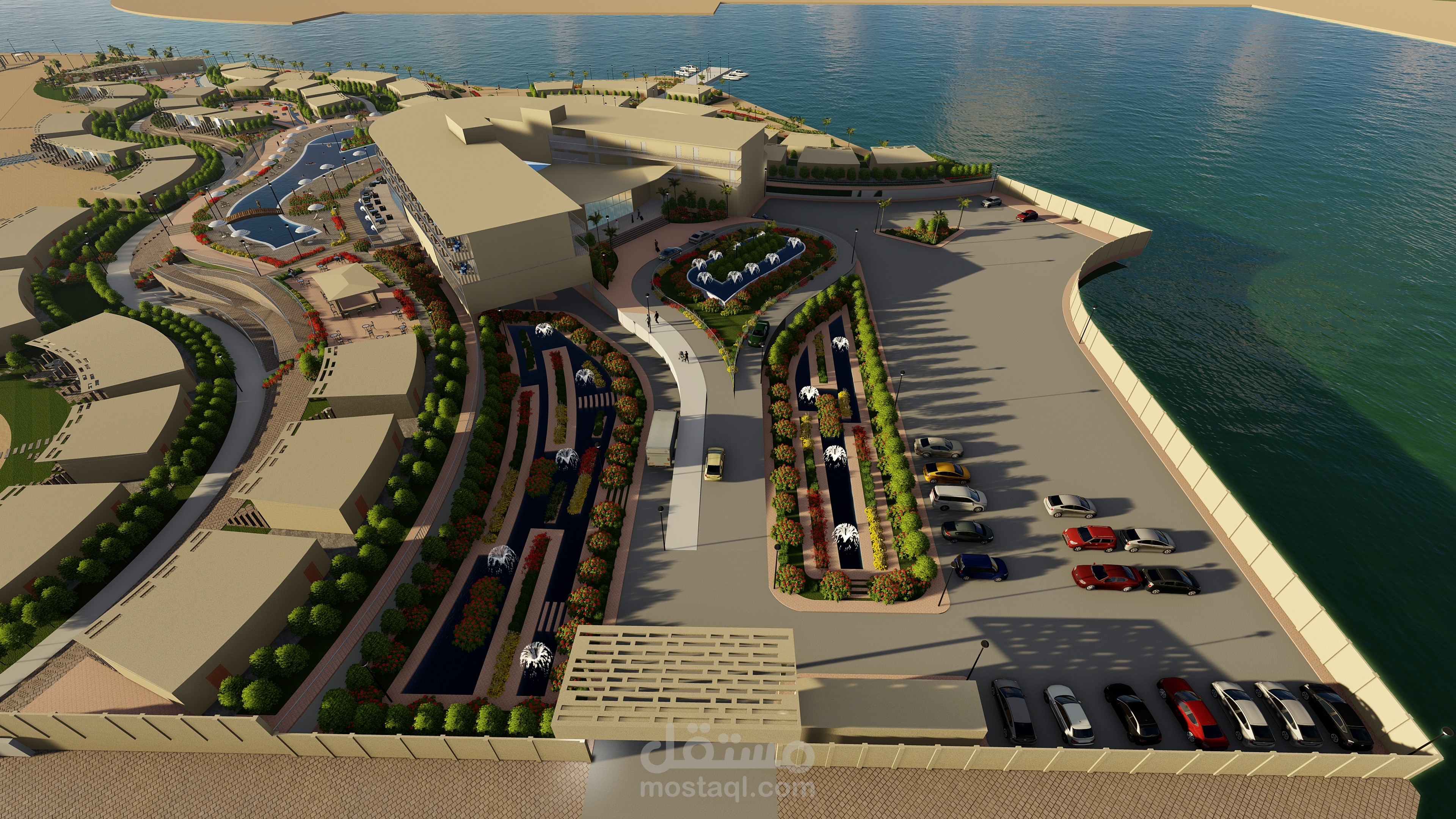 مشروع منتجع سياحى قمت بتصميمه واظهاره وعمل فيديو له