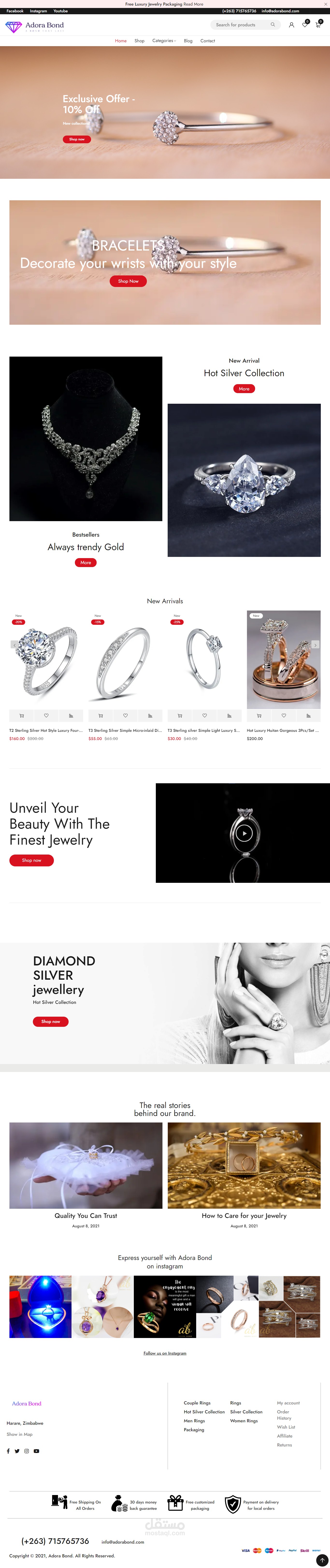 Adora Bond عبارة عن موقع تجاري الكتروني متخصص في بيع المجوهرات والمشغولات الفضية والاحجار الكريمة و يقدم خصائص متعددة مثل مقارنة المنتجات, واضافة المنتجات الي المفضلة , العروض الخاصة, قسم التخفيضات وتنوع طرق الدفع