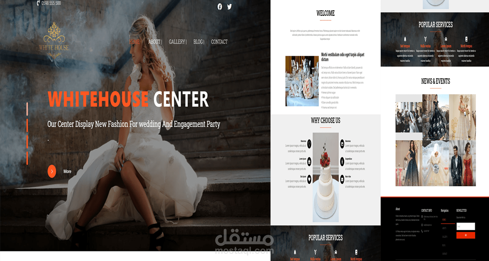 موقع لشركة متخصصة في عرض وبيع فساتين الزفاف والخطوبة بالإضافة إلى تقديم بعض الخدمات الأخرى.
