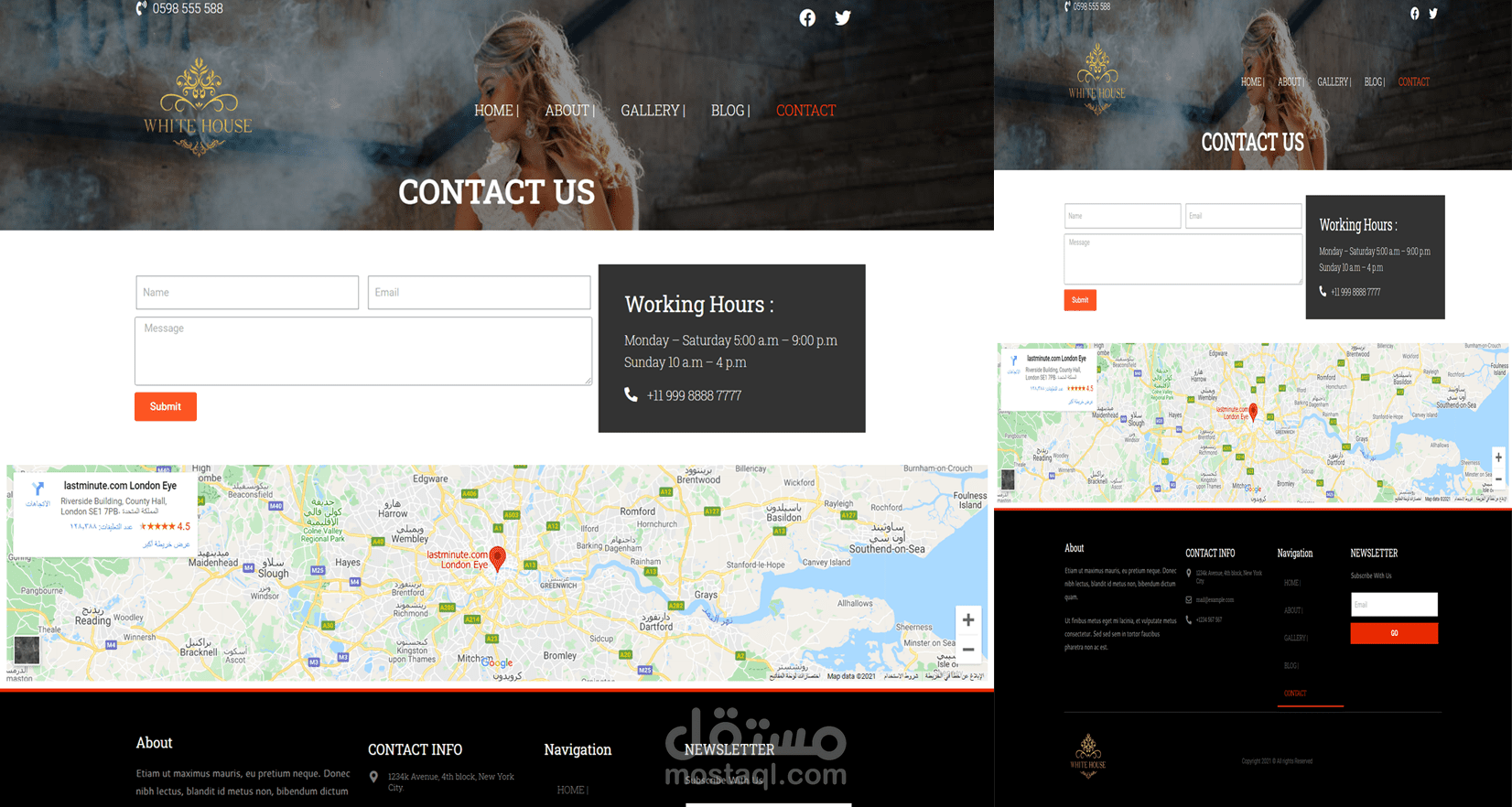 5)صفحة اتصل بنا التي تحتوى على فورم التواصل وعلى الخريطة الخاصة بموقع الشركة .