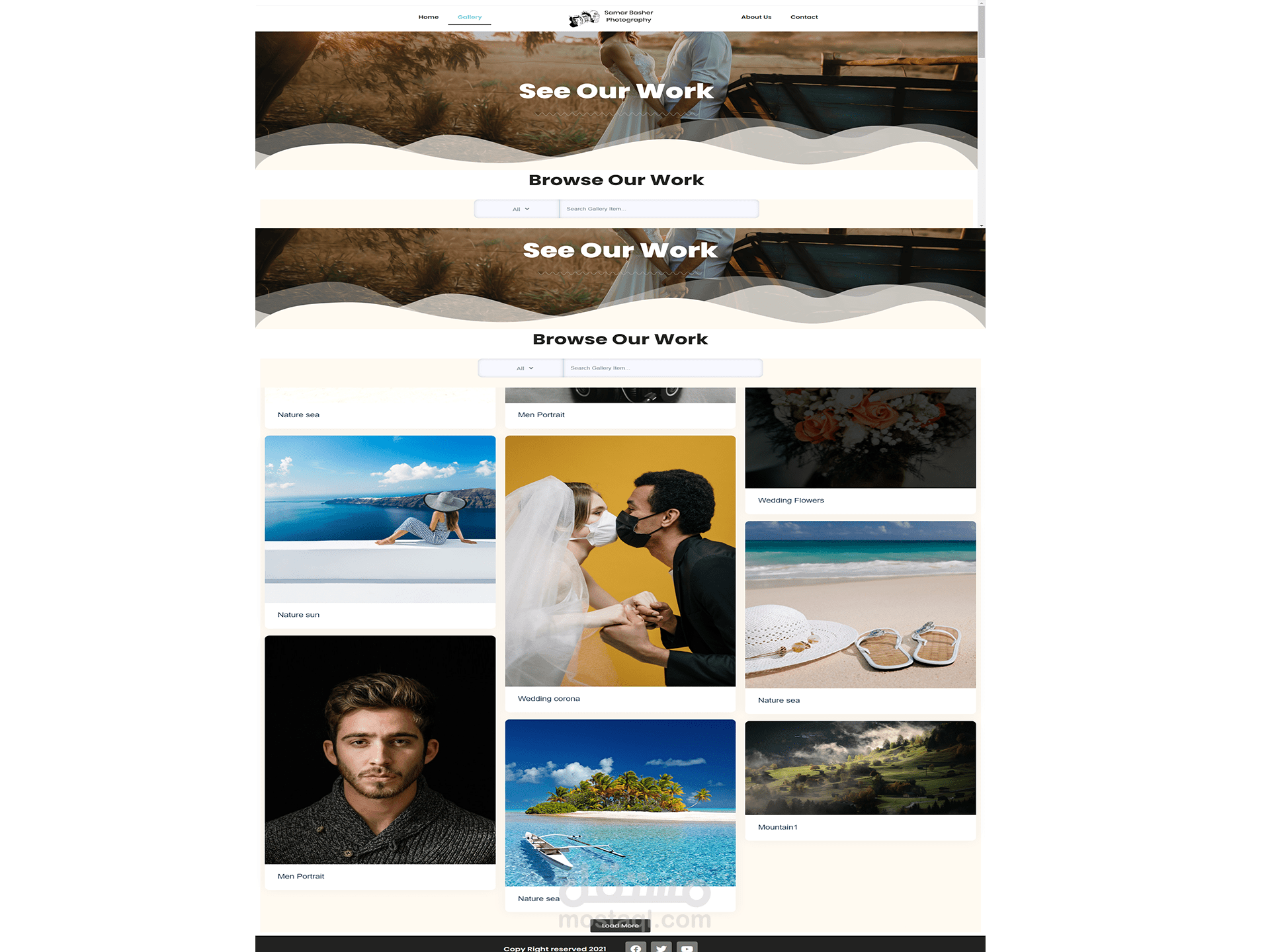 3)صفحة المعرض: يعرض فيها أعمال المصور بشكل مفصل .