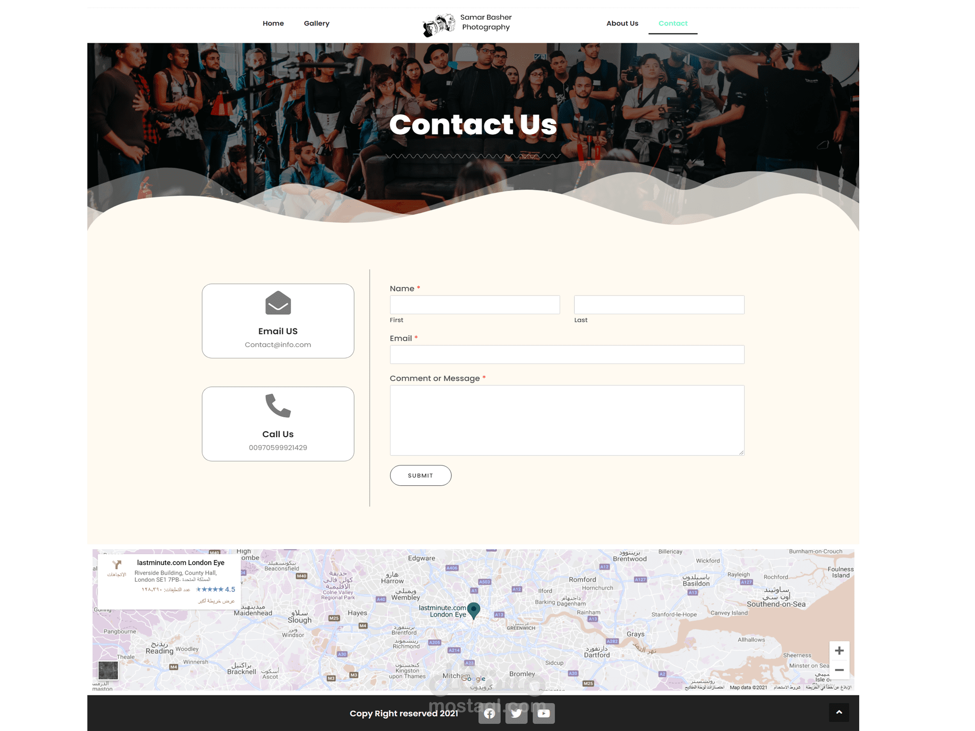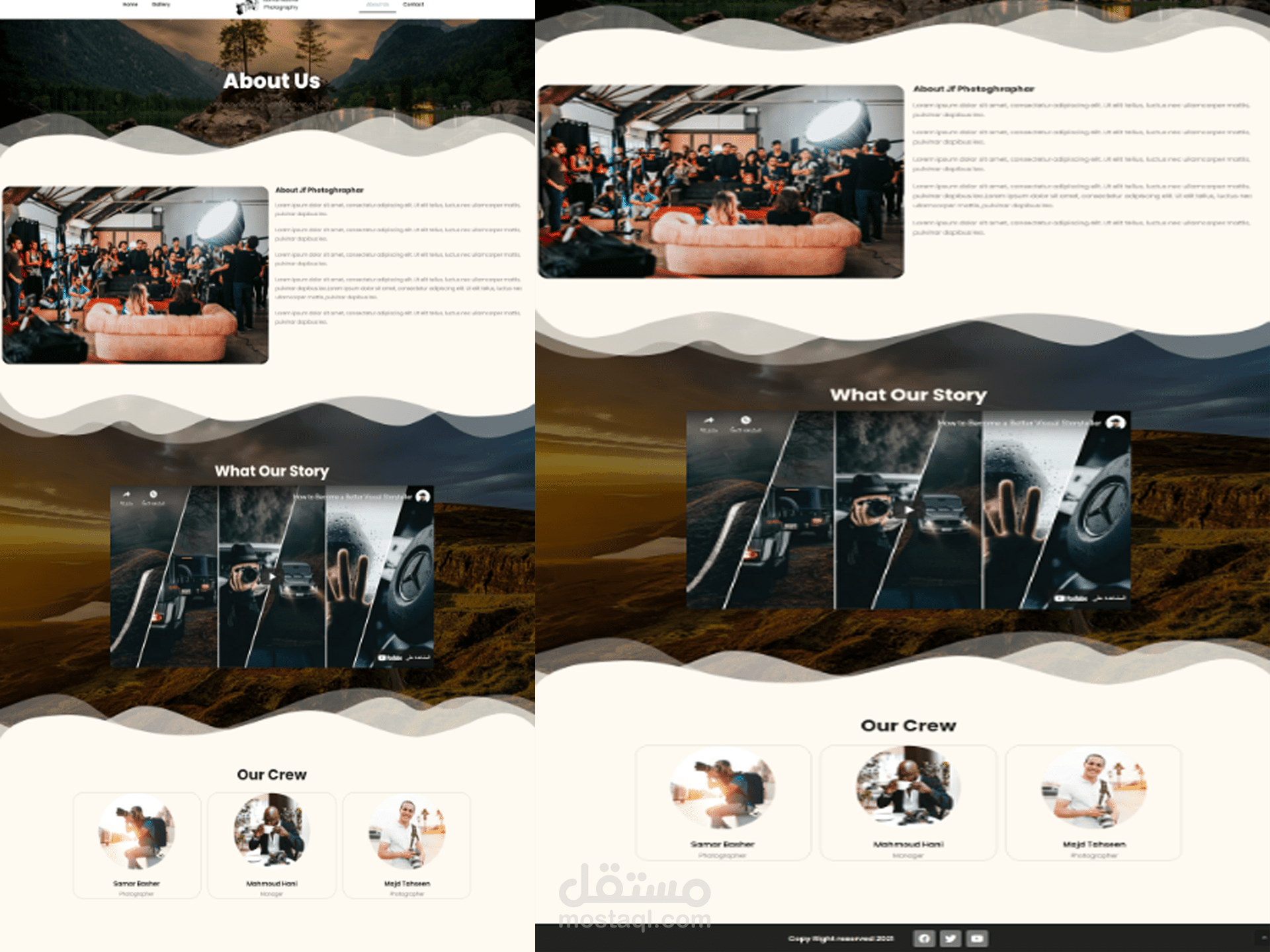 2)صفحة من نحن: تحتوي على معلومات عن المصور ، وعن أعماله ، وعن فريق العمل .