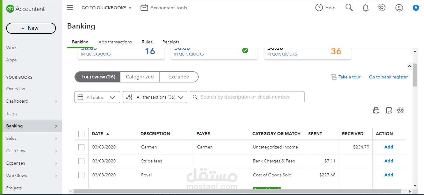 اثناء العمل على البرنامج المحاسبي السحابي QuickBooks