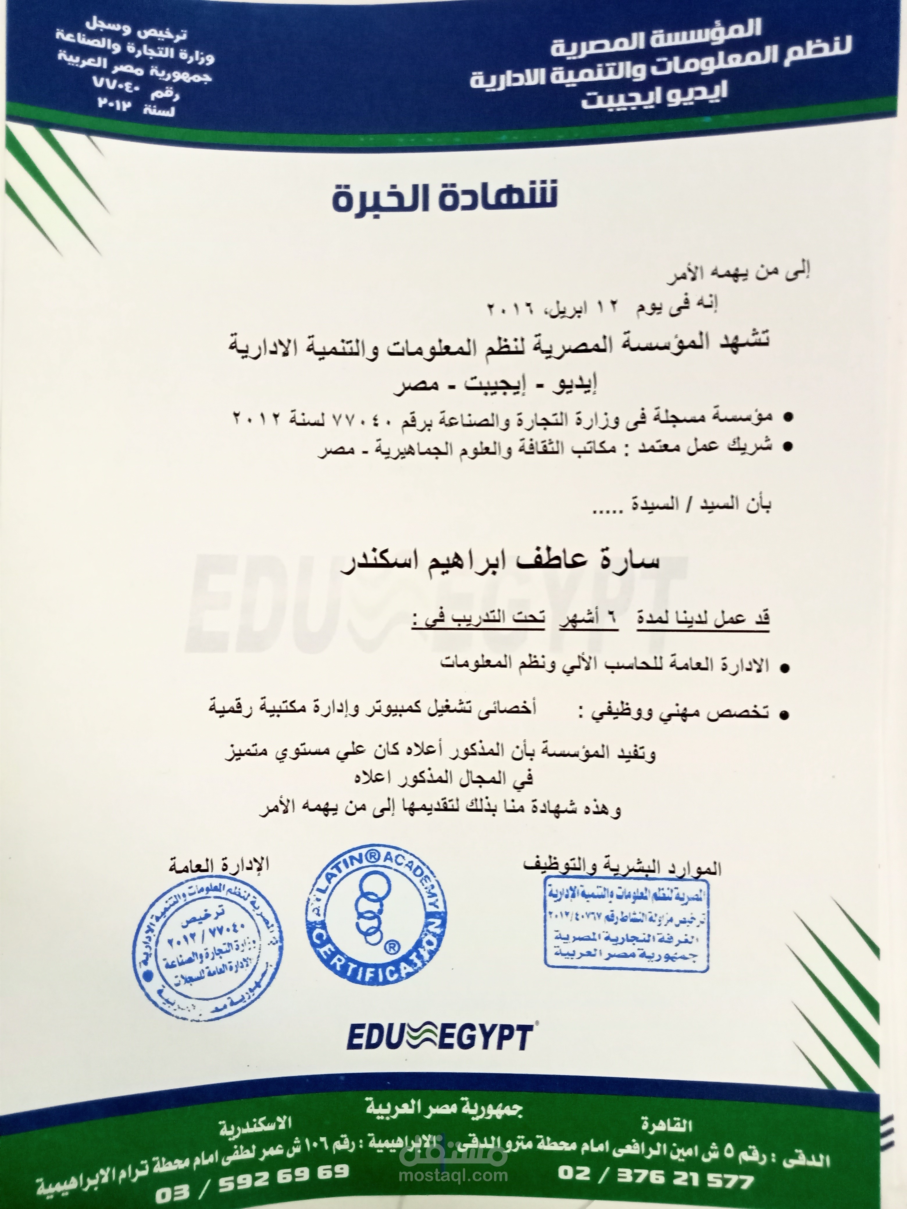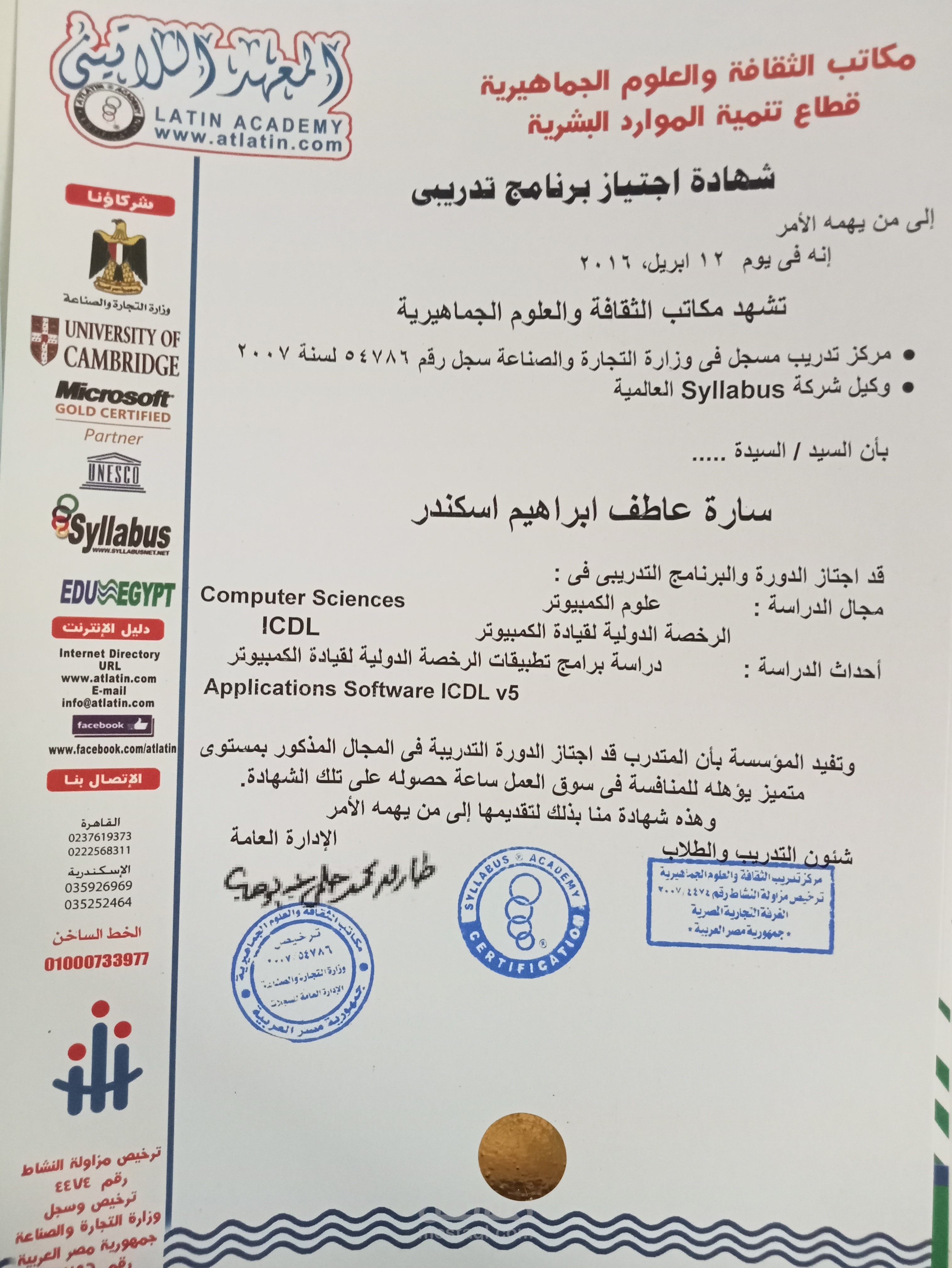 كورس ICDL من المعهد اللاتينى معتمد من وزارة الصناعة و اليونيسكو